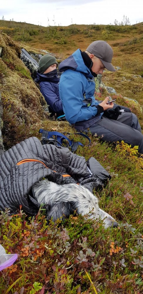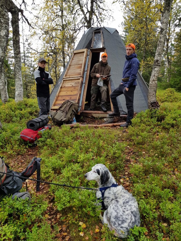 2. Tja, Trøndelag og Dårlig vær er jo alltids en sikker kombinasjon...... Så da ble det dårlig vær under rypejakta. Planen var å ligge i telt, Men på veg opp til basecamp fant vi denne fine gammen/lavoen Må si at vi alle be glade da, spesielt undertegnede som skulle i utgangspunktet ha den VÅTE hunden i teltet. Ettersom det regnet er det helt ok å være under fast tak ifbm kokkelering og kos