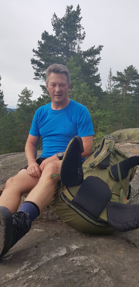 Gjennomførte en test i dag med oppakking. Sekken med innhold veide 19,6 KG og 24 GRADER i temp. Nå er jeg i Nirvana !! 1. Lundhags skoa fungerer perfekt. Gir meget god støtte nedover i bratta! og holder meg tørr på sokkene. De er heller ikke for varme. NADA tegn til gnagsår. 2. Min nye sekk Helsport Altra 85 sitter som et skudd!! 3. Dynafit t-shirt som jeg brukte er bare helt nydelig ! Oppsummert så ble dette en tur uten å tenke/føle på sko og sekk mens man gikk