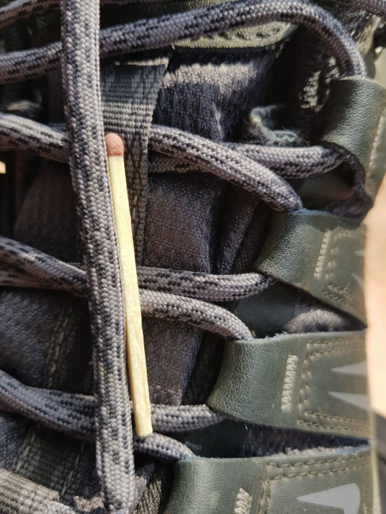 Vil bare fortsette tråden med en oppfølger fra i går. Noen sier at fottøyet er soldatens beste venn... så man må jo da erkjenne at det å finne riktig verktøy kan ta tid. For min del har jeg vært igjennom 4 faser: Fase 1: Kjøpe det jeg tror passer og prøve hjemme ( ettersom jeg kjøpte via internett) evt. butikk Fase 2: Går til og fra jobb noen dager ( ca 20 min hver vei) Fase 3: Den jeg beskrev i går. prøve en økt på 1,5 time med moderat tempo og finne ut hva du kan justere Fase 4: Justere og ta en lengre tur. Fase 4 ble gjennomført i dag. Gikk til Langevanstopppen. ca 8,5 km t/r. 415 høydemeter. Garmin belønnet med med treningsscore 3 og restitusjonstid på 19 timer. Effektiv gangtid var 2 timer og 5 min. Stien er variert. Det værste er asfalten på slutten i en bratt nedoverbakke. Mye hardt underlag hele veien. Før jeg dro strammet jeg til de to øverste . Brukte sportstape på hel og under fotbladet. Resultat: YES, JEG ER HAPPY !!! 1:Skiftet ikke sokker underveis. ( Det har jeg alltid måtte gjøre før) 2: Hadde ikke behov for å justere lissene ( De sitter. Antar at det har noe med at de er meget tykke og har høy friksjon. Se bilde der lissen er sammenlignet med fyrstikk) 3. Ingen følte ømme punkter Så for meg fungerer Keen sko med Härkila yttersokk og Asics lyte (som liner) og sportstape. Se bildeserie. Tilslutt vises et bilde som indikierer at jeg er litt rød på oversiden av foten. Må derfor slakke opp litt der neste gang.