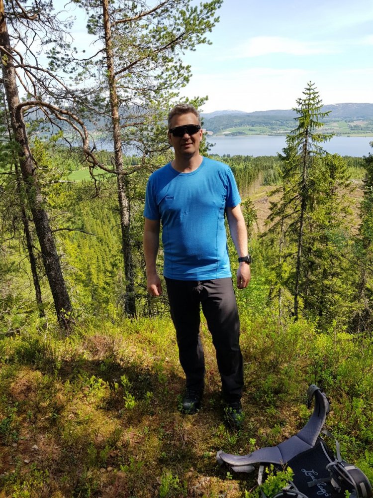 Fortsatt i Trøndelag og på tur med gamlingen. Gikk gjennom den lokale skiløypa og stoppet på "toppen" for te++