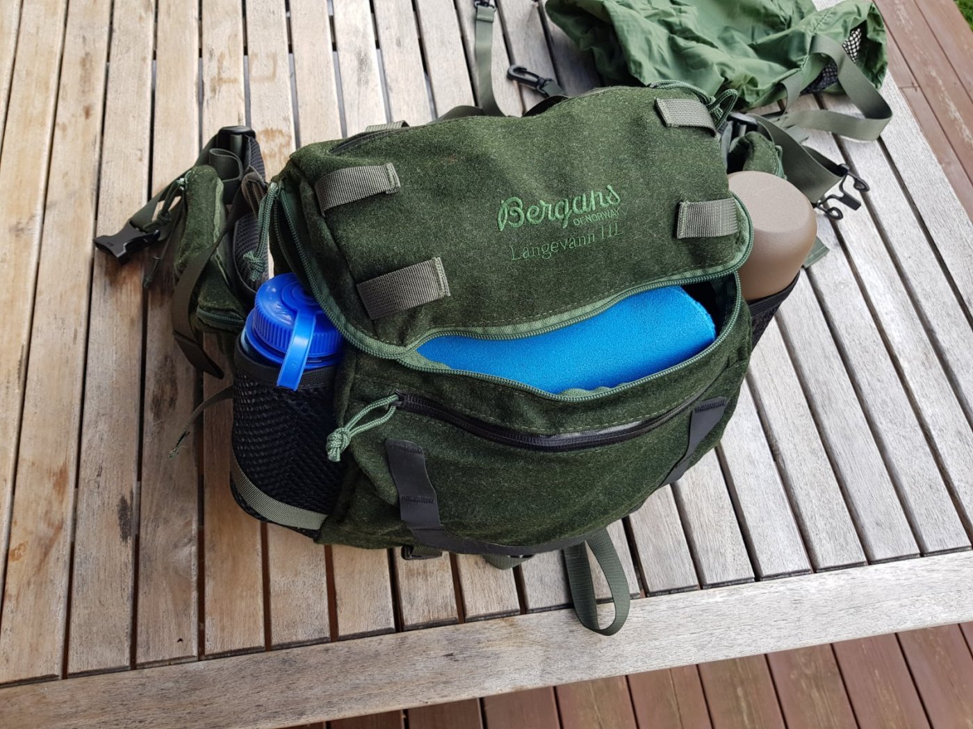 Okey, Som du ser av bildene så er det mye plass i en slik sekk ( Bergans Langevann 11 L -tipper det er forrige versjon) Har lagt i 2 ullfrotte - en genser ( 200 g XL) og en vest ( 400 g og XL). Begge fra Woolpower Sidelommene/hofte er ikke brukt. Som du ser av siste bilde er det fortsatt mulig å ha mer ned i hovedrommet. viltsekken/rypesekken er tatt av. ( 8 brødskiver, 0,5 L thermos, 0,4 L vannflaske, kniv, lykt, tau/drag, 2 par engangshansker, våtservietter OG sitteunderlag)- 44 svar