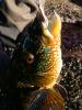Hei, vi fikk en veldig fargerik fisk på kroken i dag, ca 50cm lang og 2kg tung. Den kjempet hardt og var en fornøyelse å få opp, men dessverre ikke noe godt å spise - neste gang går den rett ut igjen. Men hva er dette for noe? Oransje-hvit mønster på magen, runde (ikke flate) øyne, lange finner, veldig robust og kraftig fisk. Den er vel ikke noe eksotisk den?