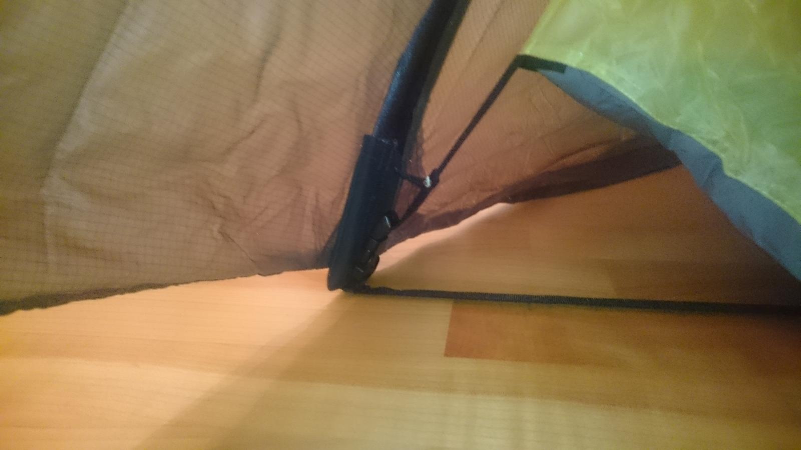 Hei! Kjøpte nytt telt idag, og slo det stolt opp i stua for å vise det nye innkjøpet. Alt var bare fryd og gammen helt til jeg skulle begynne å feste innerteltet. Det ser ut til at den ene hurtigklipsen ligger på undersiden av reima som går på tvers av teltet, mens de andre ligger over.