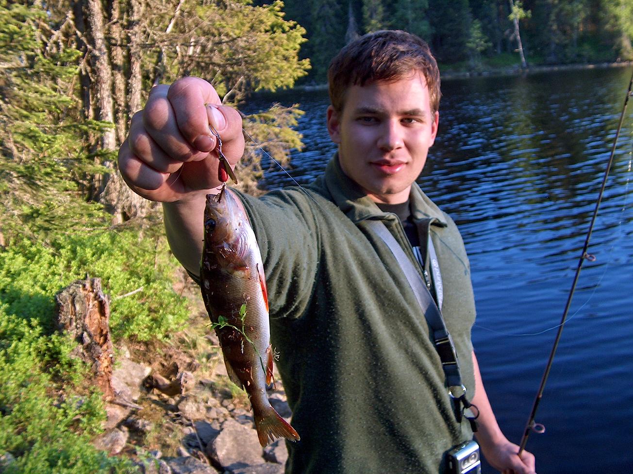 Jeg har brukt en vanlig teknikk for å få den til å se mye større ut, nemlig å holde den mye nærmere kameraet enn meg.. Den ser ut som en slugg på 140 gram, mens den reelle vekten er nærmere 65 gram. Jeg var ikke helt sikker på om jeg egentlig hadde fått fisk på kroken, det virket altfor lett. Fisken må ha svømt i samme retning som jeg sveivet inn. Jeg vil jo nødig røpe i hvilket vann jeg fikk denne flotte abboren, men jeg kan røpe såpass at det er et vann som ligger ca. 2-4 mil fra sognsvann i retning Finse.