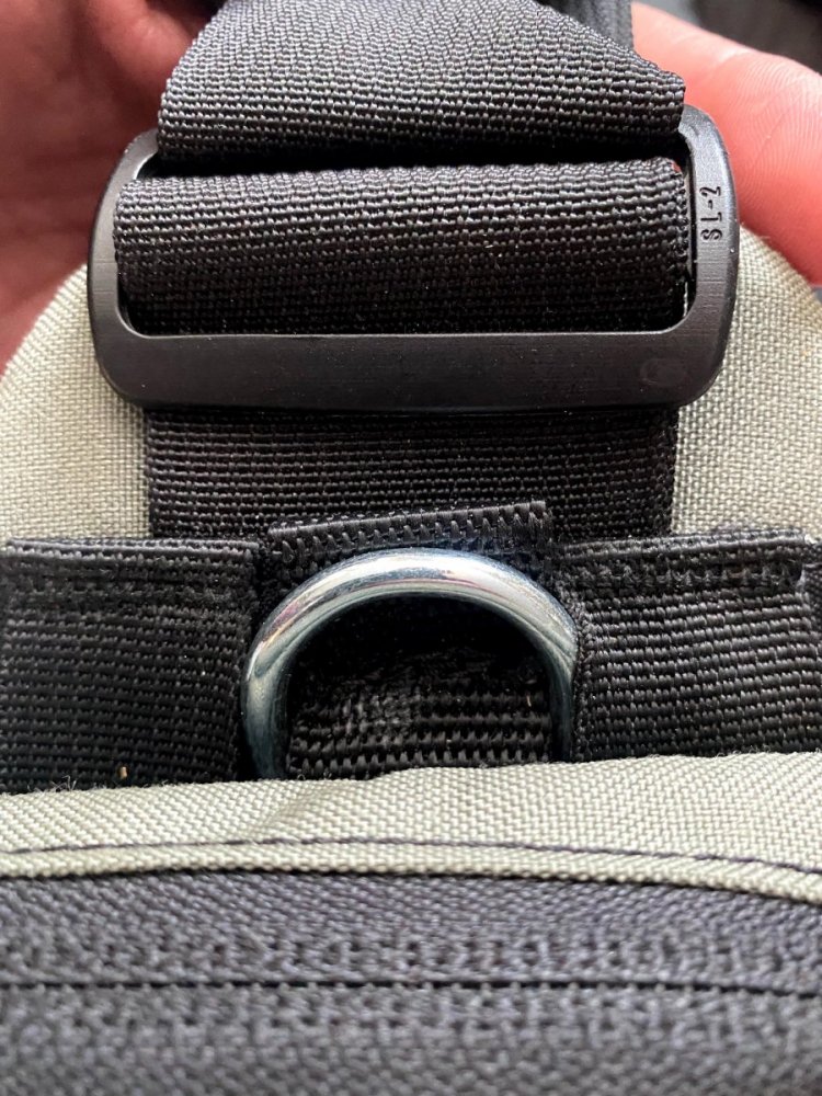 Jeg fikk til slutt en skomaker til å sy på D-ringer. Det var helt umulig å sy i det kraftige stoffet med vanlig symaskin 😅 Takk for hjelpen alle!
