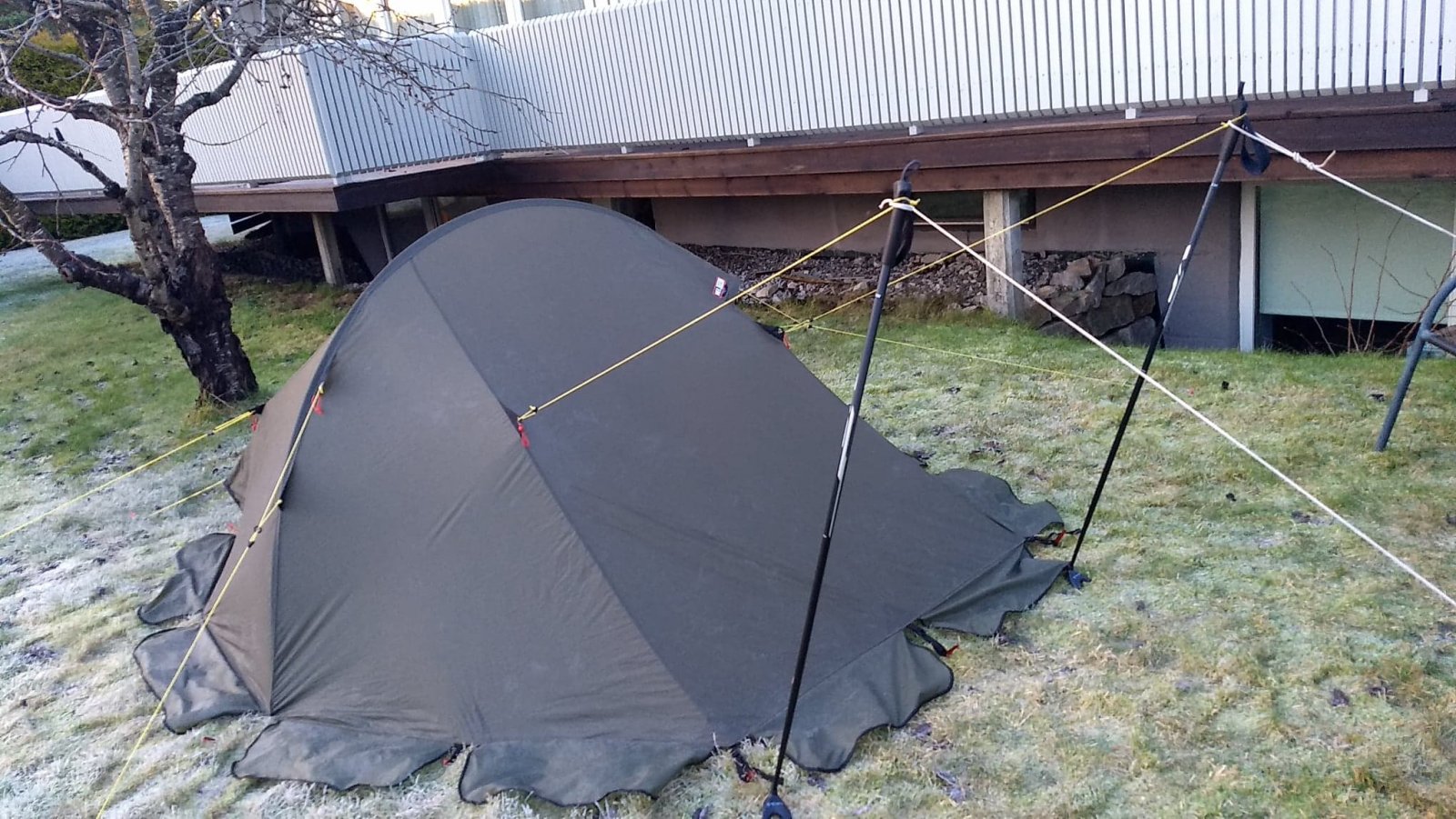 Her er noen bilder og lenker til 2 videoer fra oppgraderingen. Teltets totalvekt inklusive oppgradering og doble stenger er ca 2632 gram, ca 392 gram mer enn hva det er orginalt. Teltet veier 1850 gram uten innertelt men med doble stenger. Innterteltet veier ca 782 gram Teltet er forresten en 2018 modell, ikke 2017 som beskrevet i headingen. Video 1 viser brenneren i teltet. Det er god plass til brenneren og rikelig med takhøyde over flammen. Video 2 viser når jeg røsker godt i teltet. Det er doble stenger i stangkanalen. NB! Stengene som er brukt tilhører Helsport Svalbard 5 X-Trem der de to korteste stengene er 347 cm som er match med hva Ringstind har. Jeg ser foreløpig ingen grunn til å kjøpe ekstra x-trem. Konklusjon: Teltet fremstår som komplett og mer anvendelig etter oppgraderingen. Det er slik jeg ville hatt det fra butikk om jeg kunne ha valgt. Jeg har ved valg av oppgradering sett bort fra vekt, og kun tatt høyde for mine behov. Teltet er stort nok for 2 personer med "store" (exped synmat ul lw winter er 65x9x197 cm) liggeunderlag uten innertelt på høsttur etter at innsektene har begynt å roe seg. Som vintertelt er det perfekt for 1 person der beddingen går fint inn i teltet og det er god plass til å fyre primus samt at det er bra plass til utstyr ved siden av beddingen. Pulken plasseres langsmed inngangen slik at den nås lett. På vinterstid foregår alt i teltet og dobesøk organiseres i teltet før videre marsj. Og med det får vi et nytt ordtak "what happens in Ringstind, stays in Ringstind". PS! teltet er i testen satt opp med medfølgende teltplugger. På vinterstid bruker jeg gamle veistikker kappet i ca 50 cm lengder og Helsport sine vinterplugger på 50 cm. I tillegg brukes ski og staver på bardunene i front og bak. Jeg liker å bruke ski og staver som raier for å få motvekt mot duken slik at duken ikke får så mye nedadgående press fra vind mot duken. Når det er sagt må duken få lov til å bevege seg og stengene ta av for vinden slik at det ikke er for stramt.- 10 svar