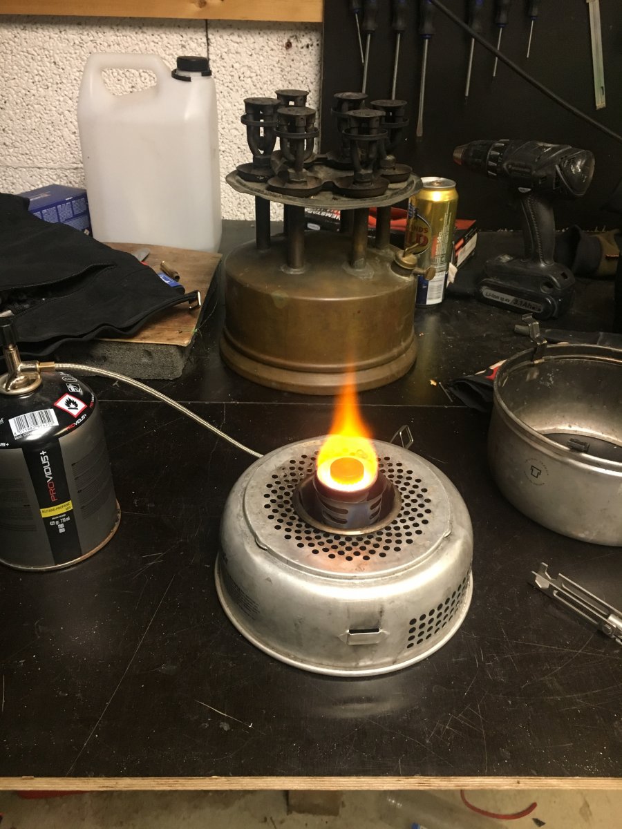 Hei! Har fått på brennrør på optimusen og der ser ut som flere dyser er tette... Kan man legge brennerhodene i bløt så sot og slikt løses opp, isåfall hva? Lurer også på om man kan skru ut dysen som sitter i hvert brennerhode ved rengjøring? Er det noen som vet hvor mye trykk det skal være på denne? Har bare bilventil og fyller med kompressor men har ikke fylt mer enn 1,5 bar..