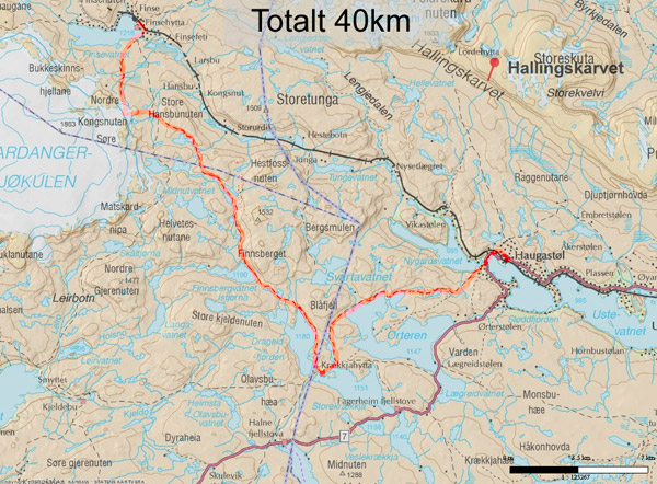 Heisann, Vi var ni mann som gikk fra Finse, via Hardangerjøkulen, videre til Krækkja og havnet til slutt på Haugastøl. En knalltur, med en myk seng, kjempemat og god vin på Haugastøl som "gulroten". Vi tok tog til Finse torsdag kveld, og var på Haugastøl søndag ettermiddag. P.M. meg dersom du behøver mer info om turen. Terje