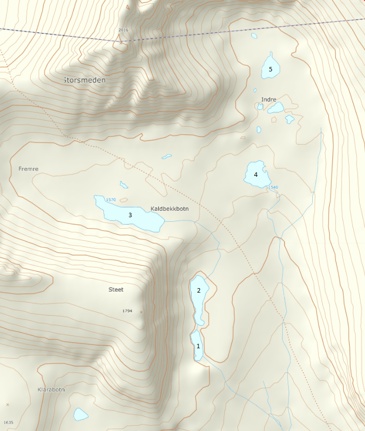 Jeg har tenkt meg en tur opp Storsmeden og ser det ligger noen vann i nærheten som jeg ble litt nysgjerrig på. De ligger riktig nok ganske høyt på 1498-1584 moh. Er det noe håp om å få fisk så høyt? Har noen prøvd disse vannene eller sett antydning til liv der?