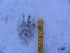 Enig med dere som antyder rev, I følge Cappelens bok om dyrespor (som jeg vil anbefale på det varmeste) ser sporløypa ut til å være fra rev som har travet med skråstilt kropp. Dette gjør den gjerne på jevnt og fast underlag. Det er bra bilder du har tatt av sporavtrykket og sporløypa . Det er også fint å ha med en referansegjenstand (fyrstikkeske, kredittkort eller aller best en snusboks). Legger ut bilder som jeg tok i Spekadalen, Tynset i romjula. Interessant om noen har synspunkter på dem. Sporene var gamle og sporingsforholdene var ikke av de beste. Jeg tror det dreier seg om et stort hundedyr (kanskje ulv). Sporløypa var på skogsbilvei og langs ei scooterløype. På veien var det travløype med skråstilt kropp og skrittlengden var 140 cm, langs scooterløypa (synlig kun ca 30 m) var det rett travløype med skrittlengde 115-130 cm. Selv avtrykket var ca 9-10 cm, klørne vises tydelig og selv om de ikke er helt symmetriske (som er typisk for hundedyr tror jeg det skyldes snøforholdene/alderen på sporet) Noen forslag