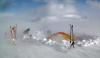 Dette teltet er hovedsakelig festet med 'sommer'-plugger. Trikset er å grave pluggen ned i fast snø. Spa først en liten sprekk/grøft i snøen på tvers av bardunretningen der pluggen skal plasseres. Bardunen festes på midten av pluggen og pluggen legges horisontalt ca 20cm nede i sprekken, slik at bardun/plugg utgjør en T. Før pluggen legges ned lager du et snitt i snøen til barduen slik at bardunen ikke trekker pluggen opp igjen. Legg en snøklump nede i sprekken for å sikre pluggen. (hmmm, dette var litt vanskelig å forklare uten å tegne opp Prøver med en rask tegning også) Vinterplugger er greit å bruke i løkkene langs teltduken.