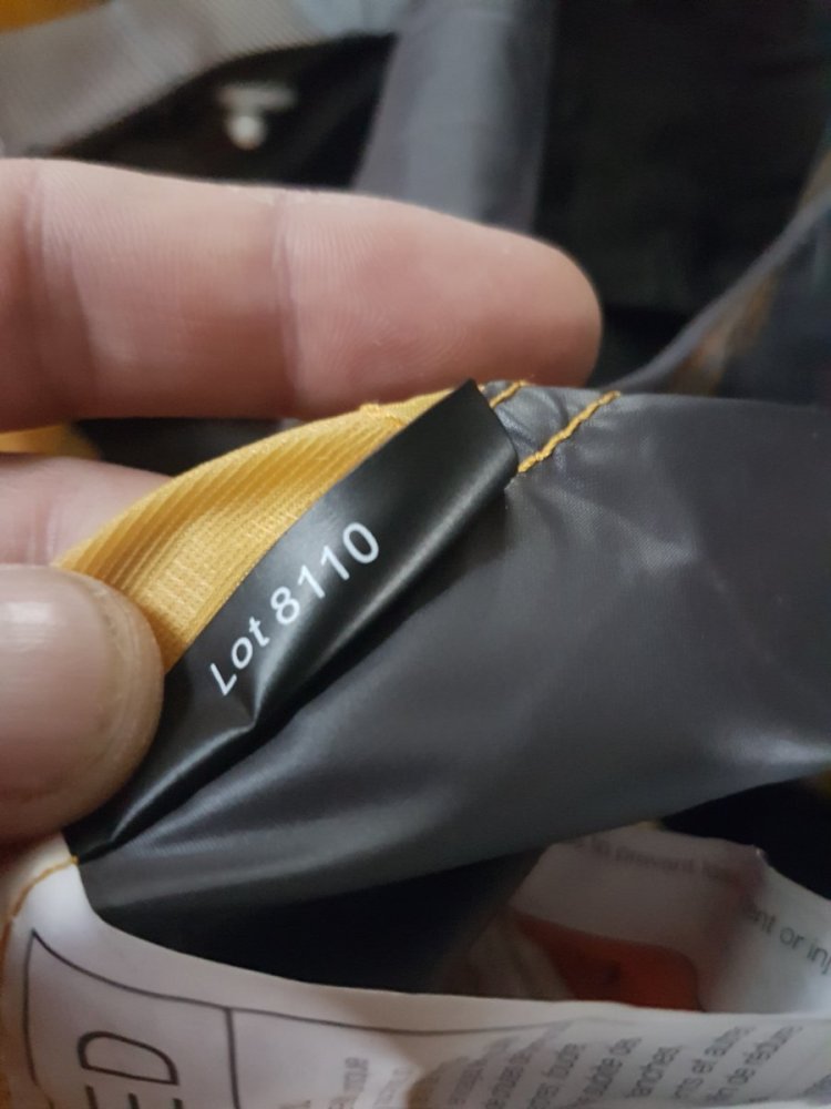 Exped har en tilsvarende løsning som Helsport, men de har gått for en noe mer kryptisk variant. To første siffrene i LOT-nr lest bakover indikerer årsmodell. Bildet er av et Orion 18-modell. Kjøpte tidligere et Orion som jeg mistenkte var en overligger. Fikk da beskjed fra de om at jeg kunne sjekke dette nr og finne årsmodell der (teltet viste seg å ha lot 31??, altså 2013-modell)