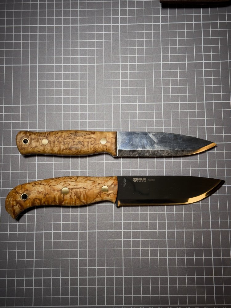 Hahaha, stod akkurat på kjøkkenet å laget meg kvelds med kniven bare for å teste. Her deler vi veldig mange like inntrykk og erfaringer. Jeg føyer meg nok inn i rekken når det kommer til å bli imponert over hva Helle har fått til med denne kniven her. Rett og slett utrolig god. jeg ble også overrasket over hvor godt den spikker sammenlignet med wit og temagami. Skal prøve skje testen i morgen. (som jeg gjør med alle kniver)
