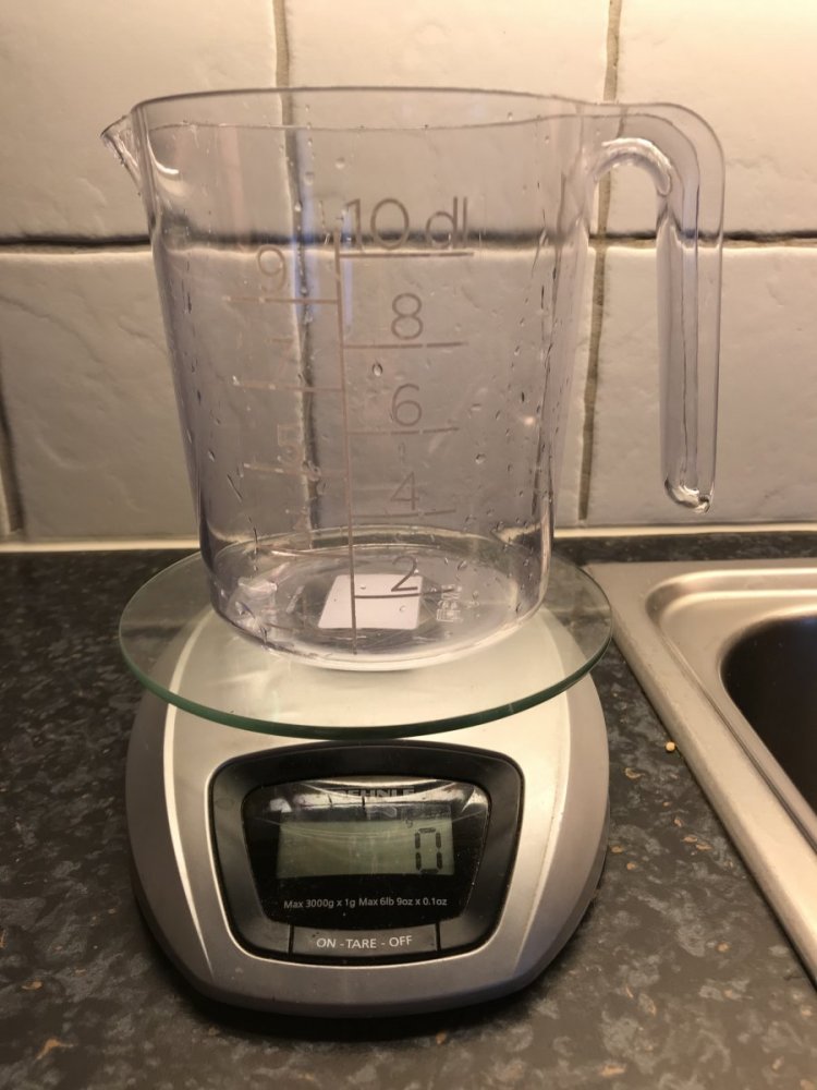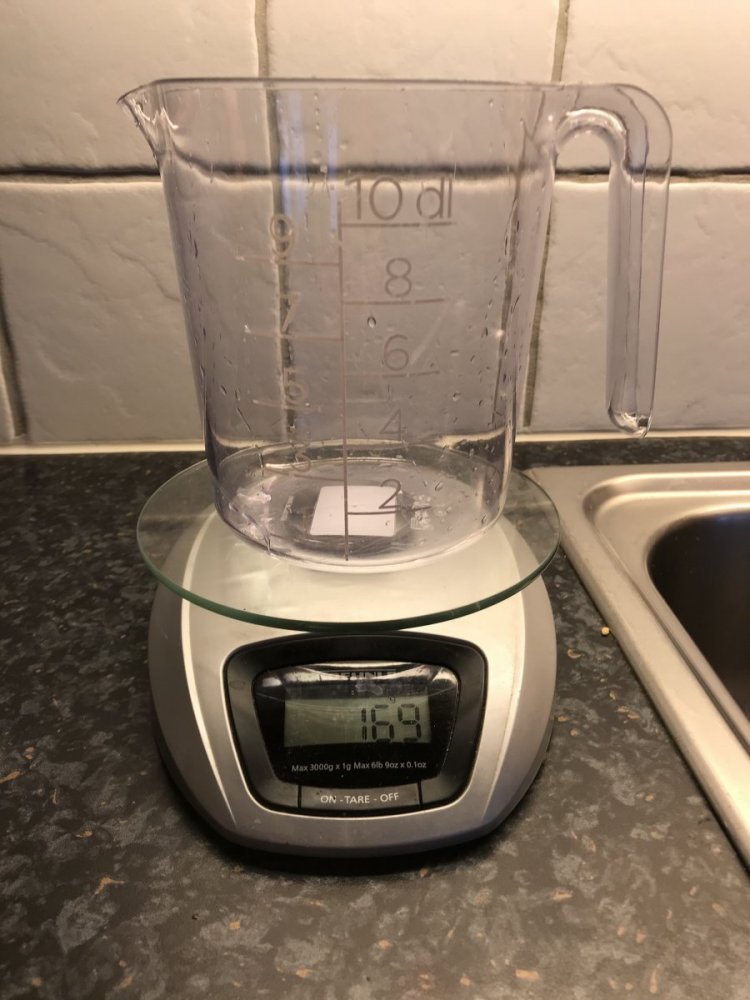 En liter gikk akkurat ikke, men nå er litermålet kjøpt på Biltema, så noen vil sikkert påstå at det ikke er helt nøyaktig 😂- 243 svar