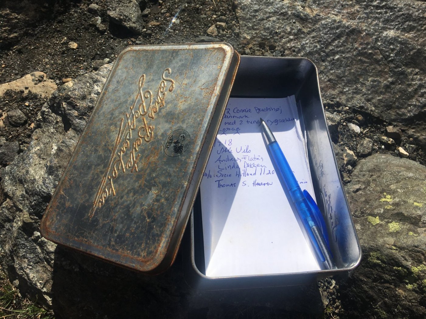 21. Hadde meg en tur opp til Gullfjellstoppen i dag. Fantastisk fint vær, null vind og perfekte forhold Viktig å skrive seg inn på toppen. Ikke mye ledig plass igjen i boken, den var smikk full. En side igjen.