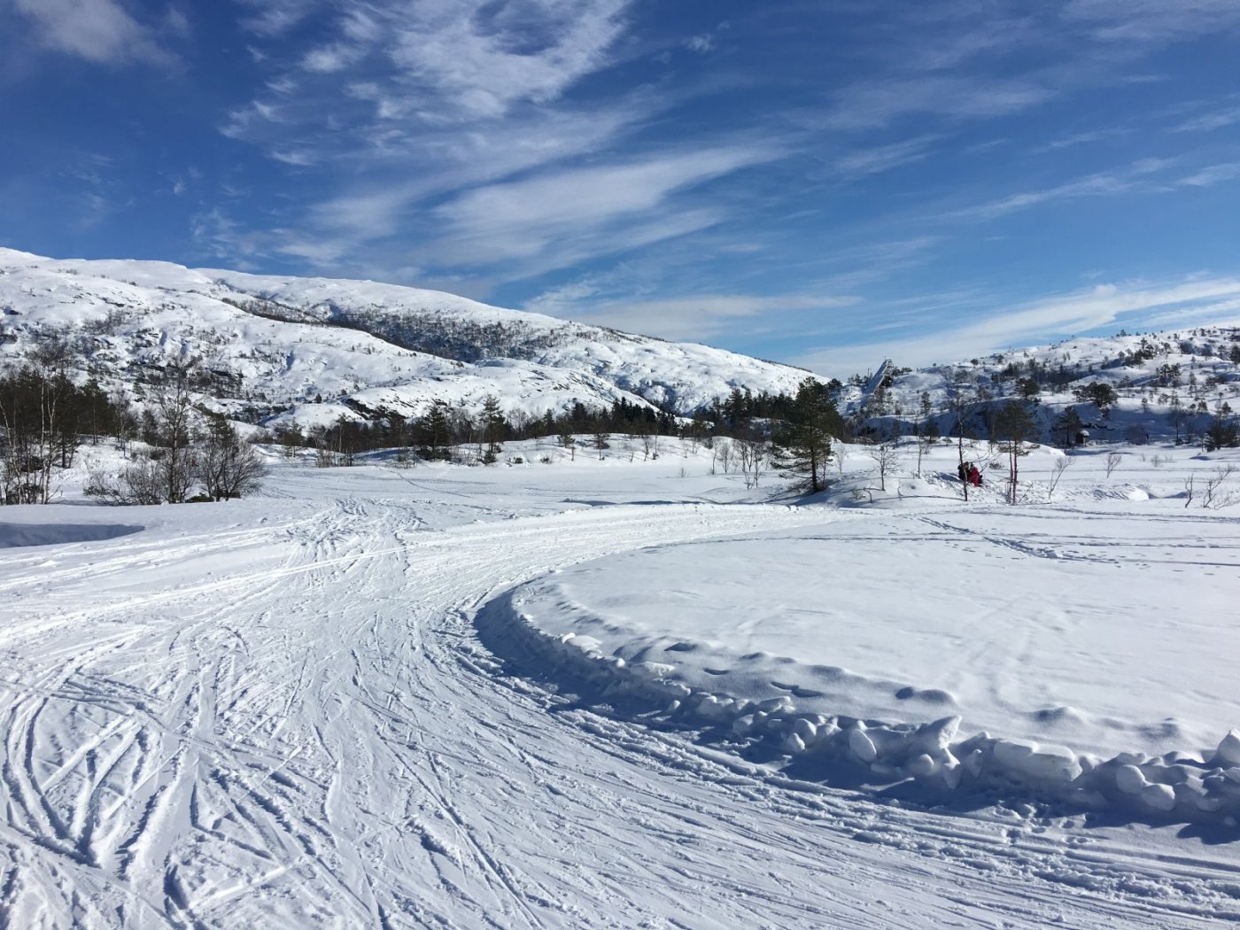 Ble en tur i løypa med småen i dag, han ville så gjerne gå på ski, og med gårsdagens lille snøfall som gjorde sitt med føret i dag! Rett og slett magisk