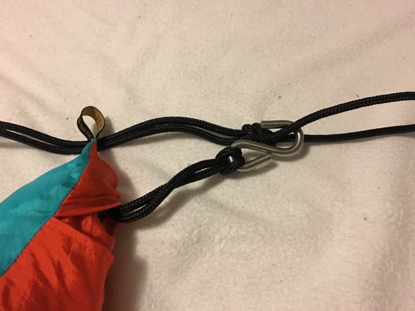 Åja, det er slik du tenker! Det ser jo ut som de bruker karabin kroker, men det vil jo bli fort slitsomt i forhold til at de hele tiden justerer seg. Jeg har ikke prøvd denne varianten selv, men prusikk har jeg veldig god erfaring med 👍🏻