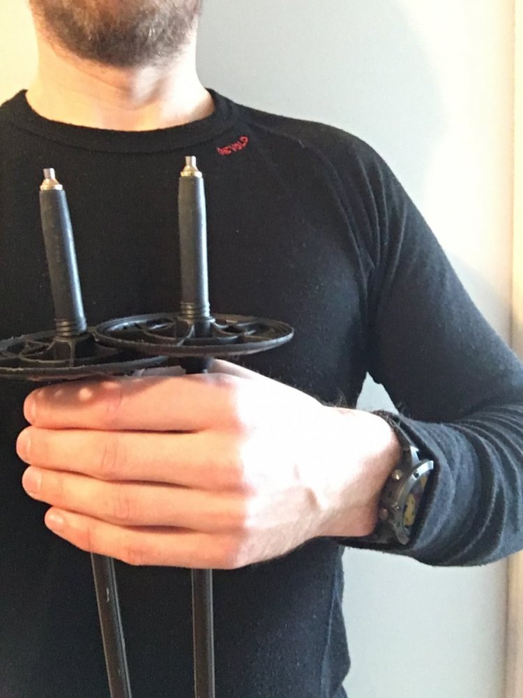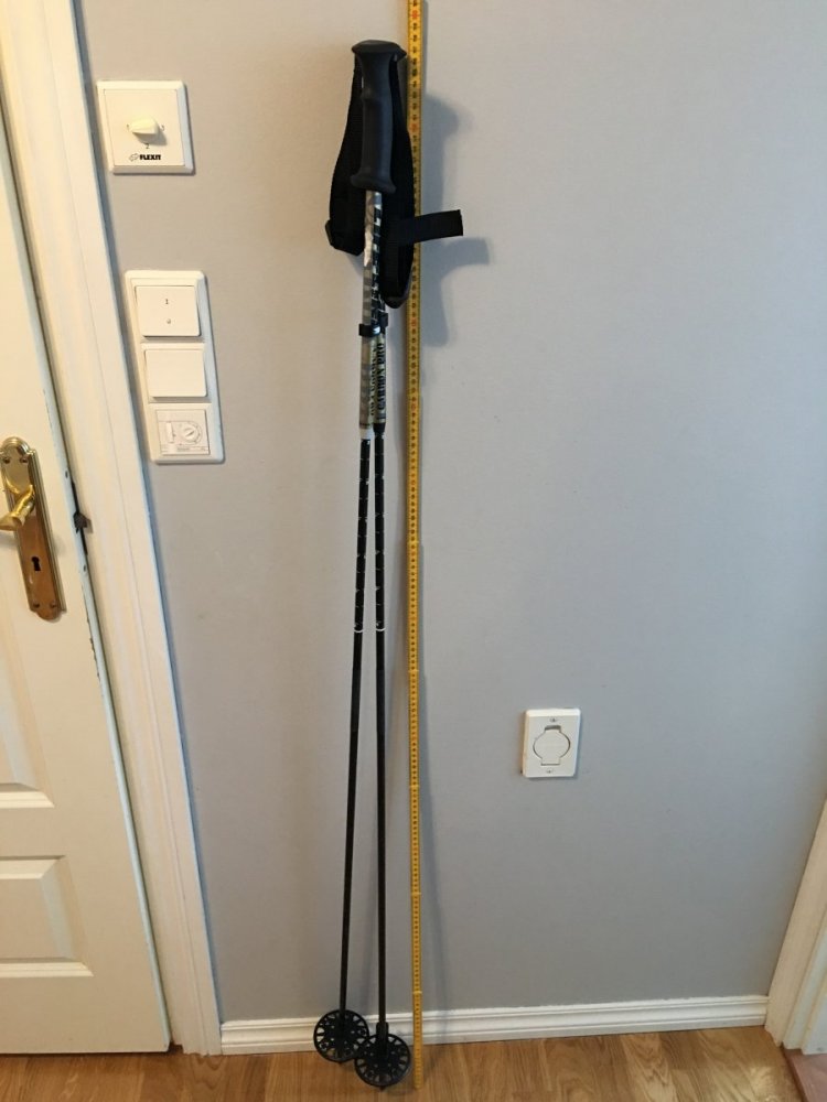 Er selv 2 meter å hadde en utfordring med å finne lange nok staver, både teleskop og faste! Jeg kom heldigvis over et restepar på lageret når jeg handlet ski! 160 lang og absolutt et minimum for min høyde!