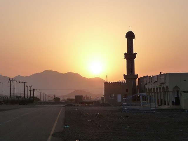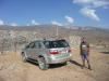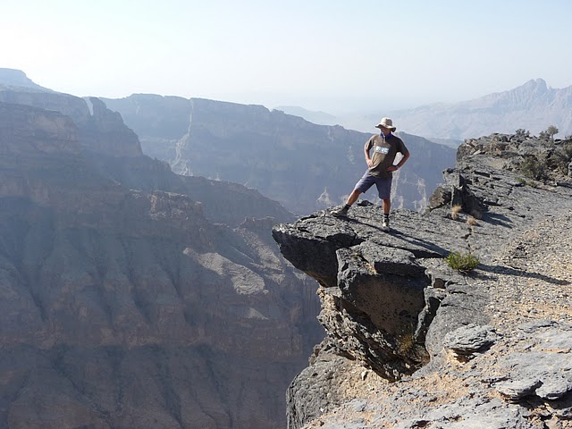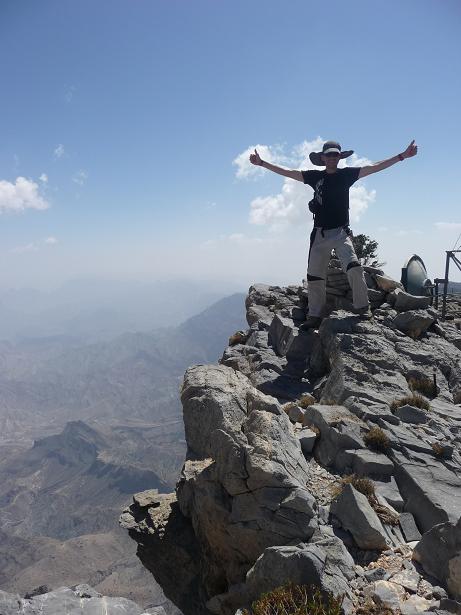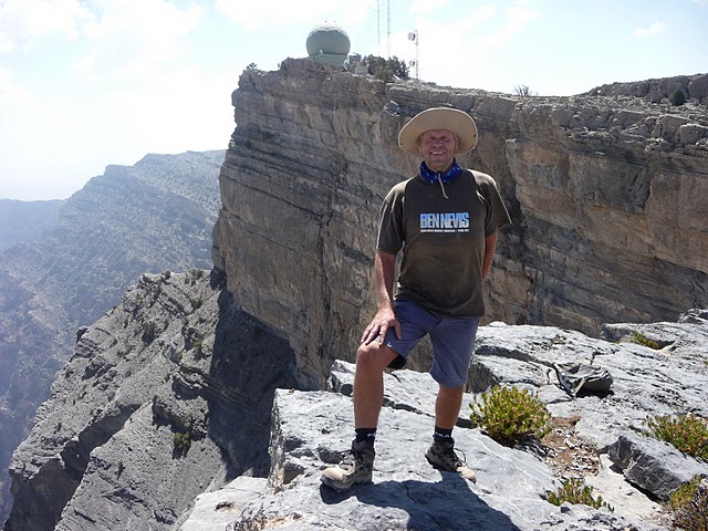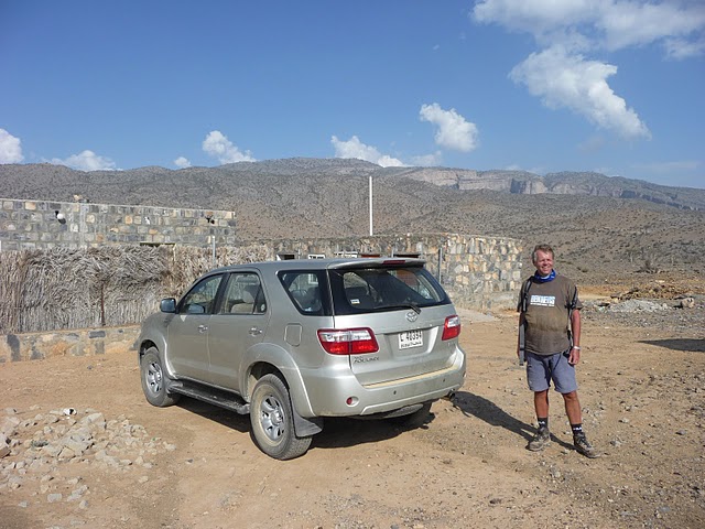 I leiebil fra Emiratene til Oman Det gikk overaskende mange timer å kjøre fra nasjonstoppen nordvest i United Arab Emirates (UAE) og til byen Bahla i Oman, ikke så langt fra Jabal Shams. For det første kjørte vi en del feil rundt byen Al Ain i det sydlige UAE, p.g.a omkjøringer ifm veiarbeider. Vi kjørte derfor litt på "gefuhlen" en stund uten GPS, men vi kom oss heldigvis tilbake til hovedveien, da vi lot GPS'en kalkulere en ny rute mot grensen. Det var litt kø ut av UAE, men det som tok tid var at funksjonæren la passene våre til side, mens han fortsatte å ekspedere turister fra gulf-området. Mulig at våre pass måtte ligge der og modnes litt på bordet, før han omsider kunne stemple oss ut. Eller så var det våre skitne klær og lange skjeggstubber som var årsaken, og det faktum at Lars (snilen) i sine kortbukser viste knær i et muslimsk land (fy-fy Lars!). Dessuten måtte vi overraskende nok betale oss ut av UAE, en såkalt departure tax på 35 AED (56 NOK) per snute. Det bar etterhvert videre til immigrasjonen i Oman, men også her følte vi at vi ble nedprioritert. Våre pass ble lagt til side, mens turister fra gulf-området fikk sine stempel umiddelbart. I tillegg måtte vi fylle ut et arrival-skjema og grensevakten tok 20 OMR (300 NOK) fra hver av oss i visum. Papirene på leiebilen gikk derimot raskt igjennom systemet. Jeg tror vi brukte bortimot to timer bare på grensen. Vi fortsatte deretter kjøringen sydover i Oman, det var motorvei også her, men ikke helt på nivå med UAE. Blant annet var det en del sand og stein i veibanen. Dette fikk vi virkelig erfare da en bil som passerte oss i stor fart, sendte avgårde en liten stein mot vindusruten vår, noe som avga et høyt smell. Vi oppdaget en stjerne i frontruta, ca 2 cm i diameter. Vi ankom Bahla lenge etter at det hadde blitt mørkt. Der fikk vi øye på et hotell langs veien, og bestemte oss for å sjekke inn der, istedet for å kjøre videre. Det fristet ikke å sove under åpen himmel en natt til, dessuten var det uttrykk for regn. Men Lars hadde rotet bort passet sitt, så vi hadde innledningsvis litt problemer med å sjekke inn på hotellet. De vil vel ikke ha en papirløs flyktning boende på et slikt hotell. Det ble til at vi brukte nesten en time på å endevende hele bilen og all bagasje både to og tre ganger før Lars omsider fant passet i bunnen av storsekken sin. Hvordan passet har havnet der, etter hyppig fremvisning i dagens grensekontroll, er rett og slett et lite mysterium. Vi delte i allefall et rom med 2 senger, og fikk oss både middag og frokost på hotellet til den totale sum av ca 40 OMR (600 NOK). Den hyggelige damen i resepsjonen påstod dessuten at vi kunne kjøre helt til topps på Jabal Shams. En veldig overraskende nyhet, ettersom vi trodde at veien bare kunne kjøres opp til ca 2200m. Der kommer man visstnok ikke videre p.g.a en militær sperring, hadde vi lest. Vel, vi tok ikke akkurat hennes ord for god fisk, ettersom folk som ikke har tindebestigning som interesse, mangler en del forståelse for hva som er en topp og hva som ikke er det. Vi bestemte oss derfor, helt i tråd med vår opprinnelige plan, å dra opp grytidlig neste morgen i tilfelle vi likevel måtte gå opp på Jabal Shams. Til topps på Jabal Shams Vi fikk oss en tidlig frokost kl. 05:30, før vi sjekket ut av hotellet og satte oss ut i bilen. Da oppdaget vi at skaden fra gårsdagens steinsprut, bare over natten hadde laget en 20 cm lang sprekk i frontruta. Ja vel, vi var nå fullforsikret (CDW uten egenandeler) og tenkte ikke så mye mer over det. I alle fall var det ingen av oss som tenkte på at vi måtte innhente politirapport på skaden for at forsikringen skulle gjelde, ihverfall ikke når det gjaldt en steinsprut. Det fikk vi først erfare da vi skulle returnere bilen i Dubai. Men mer om det senere. Det var ikke noe problem å finne avkjørselen på riksvei 21 litt sør for Bahla, for her var det godt skiltet til Al Hamra (i tillegg til Jabal Shams om jeg ikke husker feil). Dessuten hadde vi gps'en min i bakhånd. Det var overraskende gode veier med asfalt, både forbi Al Hamra og videre oppover. Da de bratteste bakkene tok til var det vekselvis asfalt og grus. Vi tok ikke av på sideveien til Jabal Shams Basecamp, fordi vi først ville sjekke ut om veien faktisk var åpen helt til topps. Men litt lenger oppe, der det finnes en avkjørsel og vei helt opp til Jabal Shams, fant vi ut at denne var sperret med en høy port og piggtråd rundt. Jeg snakket med vakta, og han bekreftet ganske raskt at veien kun er for militært personell. Jeg spurte om vi kunne sette bilen utenfor, og heller gå opp veien, men da sa han at hele Jabal Shams var "restricted area". Da jeg spurte om vi kunne kjøre ned til Jabal Shams Base Camp, og gå fra der, gjentok han litt bryskt at hele Jabal Shams var "restricted area" og at vi ikke hadde noe der å gjøre. Javel, knute på tråden. Jeg gikk tilbake til bilen og diskuterte med Lars hva vi skulle gjøre. Lars ville parkere bilen litt nedenfor porten, og snike seg rundt sperringene og inn på veien til fots. Men denne ideen likte jeg ikke, det var for stor fare for å bli observert. Vi ble heller enige om å kjøre tilbake til Jabal Shams BC, godt ute av syne, men vi ville tape nesten 300 høydemetre på dette. Det viste seg at BC var en slags campingplass med flere hytter. Rett i nærheten fant vi også en merket tursti oppover mot Jabal Shams. Vi parkerte bilen (1920 m.o.h) og begynte å gå langs stien. Stien var stort sett usynlig men den var godt merket med maling hver 10-20 meter, så ruta var enkel å følge. Stien dreide bort mot ryggen, og fulgte deretter stort sett kanten av det gedigne stupet. Stien oppover her hadde kjempegod utsikt, nesten som Grand Canyon. Da vi passerte 2600 m.o.h, skjønte vi at stien ikke ledet til det høyeste punktet av Jabal Shams, men heller dreide bortover mot syd-toppen som ligger langt fra hovedtoppen. Vi skjønner godt at militæret