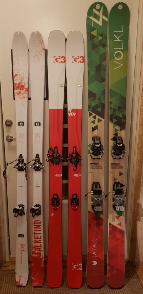 5. G3 Findr 86 (172 cm / 122-86-109 mm), de midterste. Skulle definitiv hatt med de til høyre også for litt bedre flyt. 😊
