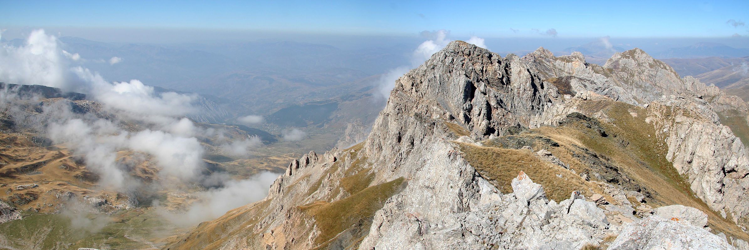 Hei, Planen for skolens høstferie var egentlig Slovenia og Dolomiter, men værvarslet var dårlig, vi dro derfor på oppdagelsferd til Albania isteden. Første topp var Jezerce, høyest i Nord-Albania, flotte omgivelser. Dernest sto Korab for tur, en dobbel nasjonstopp i Europa, kanskje den eneste? (Dersom Italias høyeste punkt legges til Mont Blanc..) De største utfordringene lå i å finne fram til fjellene og passende steder å starte fra. Infrastrukturen i Albania er fortsatt elendig og kartene (også veikart!) er meget unøyaktige. En 4-hjulstrekker (Pajero Sport) var helt nødvendig. Albania er et billig land å feriere i, folk er hyggelige og hjelpsomme. Det er fortsatt preget av at Hoxha i 40 år lot befolkningen (drøye 3 mill) bygge 700.000 bunkers av armert betong. En bunker per 4 innbyggere !! Man kan bare tenke seg hvordan veiene hadde sett ut dersom prioriteringen hadde vært annerledes. Jeg legger ved noen bilder. Full rapport på http://www.ii.uib.no/~petter/mountains.html Petter