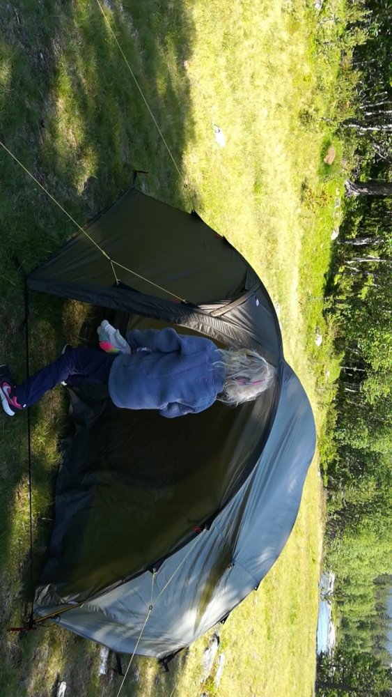 1. Helsport Reinsfjell pro 3 2. Bergans Trysil 3, billig start telt .ok men oppgraderte til Reinsfjell når jentungen vart ivrig på tur og fiske fikk mer plass og takhøyde. 3 Backpacker gapahuk ,kjekk ha med på dagstur og fisking. Lettvekts presenning fra biltema brukes som tarp og over teltinngang ved mye nedbør men skal oppgraderes til skikkelig lettvekts tarp med mindre pakkvolum Til solotur vil det snart bli et Helsport Trolltind SL2 eller Fjellheimen SL3 så får med 2 wide underlag hvis vesla er med og skal gå et stykke så Reinsfjell ikke blir aktuelt er litt i tankeboksen mangler noen cm bredde på Trolltind for kunne bruke underlag har..
