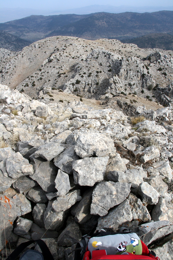 Nå er ferien over og jeg klarte å få meg en fjelltur en av dagene. Den største utfordringen var å finne et godt kart. Det klarte jeg ikke. Ifølge boken "Turen går til Tyrkia" er fjellkart militær eiendom. Jeg kjøpte tre forskjellige turist- / veikart over området og så etter svingete veier hvilket gjerne betyr bratt terreng. Stedsnavnene var forskjellige på de tre kartene og skiltingen ved veiene virker mer eller mindre tilfeldig. Erfaring fra turer til ulike ruinbyer og andre severdigheter tidligere i ferien sa meg at det var greit å holde seg unna småveier. På det ene kartet stod det merket av fjellpass og jeg blinket ut det høyeste som var 1825 moh og kaltes Acabel Gecidi. Dette ligger på vei 695 ca 10 mil nordøst for Manavgat / Side. Veien er 2-3 fils bred vei med ok standard. Den tar av motorveien ca en mil øst for Manavgat. Planen ble å dra til Alcabel og se om fjellene på en av sidene av veien fristet til dagstur for en fjellsjuk bleieskiftarbeider. Jeg dro fra feriehuset 15.11.10 kl 5, en time etter den jævla nabohanen hadde våknet og for en gangs skyld var jeg oppe før kaukingen fra minareten tok til. Jeg kalibrebrerte høydemåleren på pulsklokka nede ved havet og kjørte nevnte vei opp og ned berg og daler. Det var liten trafikk og de første tegn til arbeidskraft var maisselgere som fyrte opp kjelene for koking av "sut-misur". Jeg passerte avkjøringene til Gundogmus og Akseki og når høydemåleren viste 1750 moh var jeg ved passet på angivelig 1825 moh. Det hadde blitt lyst og var alene i verden. En Lada stod parkert rett ved passet og etterhvert dukket det fram en tynn solbrun kar med bart og dressjakke bak en stein. Han hadde nok "gjort morgentoalett". Fjellene på begge sider av passet så overkommelige ut. Skulle jeg gå sørryggen eller nordryggen? Begge så greie ut. Valget falt på sørryggen, siden jeg hadde sett et punkt på ca 2800 moh (Akdag) på denne ryggen som heter Geyk Daglari. Jeg hadde ikke peiling på om det var i nærheten. For å komme opp på ryggen måtte jeg opp en flanke med mange smårygger. Det var mange muligheter for å velge mellom lett klyving oppe på ryggene eller enkelt relativt bratt gange i søkkene. Jeg mistet fort det lille som var av sti, men det var lettgått så jeg brukte ikke tid på å lete etter den. Vel oppe på selve toppryggen viste høydemåleren (kalibrert til 1825 i passet) 2180 moh. Det jeg trodde var en smal rygg vist seg å være et skrånende småkupert platå. Nytt valg: høyre eller venstre? Jeg ville oppover, så valget var lett. Mot venstre så det ut til å være en slags topp. Noen hundre meter mot høyre stod det en varde på størrelse med et menneske, så det kan se ut til at det finnes en mer brukt oppgang som kommer opp der. Jeg bygde en liten varde for å finne nedgangen på hjemturen og oppover den slake ryggen mot toppen. Det var stadig muligheter for å velge å gå enkle men morsomme nok klyvepartier eller runde på sørsiden. Jeg var snart oppe på toppen på ca 2330 moh. Utsikten var vid men disig og det er ingen tvil om at det er grunnlag for fjellturisme her. Vel oppe på toppen var det igjen klart for å velge. Ned igjen eller videre? Uten kart. Gikk jeg videre nå, ville jeg mistet kontakten med dalen der veien lå og det var mange muligheter for veivalg siden det stadig går av rygger i forskjellige retninger. Jeg valgte å følge hoveryggen videre sørover siden det så ut til å ligge noen høyere topper videre på ryggen og i løpet av et par timer hadde jeg vært oppom 5-6 punkter på over 2300 moh med primærfaktor fra ca 10 m til ca 200 m. Noen steder valgte jeg å klyve smale egger og et par spenstige hammere. Det var god friksjon på fjellet og vel vitende om at jeg kunne gå rundt på vei tilbake var det greit å leke seg litt selv om jeg ikke hatt med noe utstyr. Jeg gikk stort sett samme vei tilbake, men rundet et par steder rundt noen åser. Jeg kom også innpå en utydelig sti i lia ned mot passet, men mistet den igjen etter kort tid. Med kompass, høydemåler og vardebygging (fjernet på vei tilbake) var det greit å gå uten kart, men jeg hadde ikke likt meg der oppe i tåke. Det blir tidlig mørkt (ca 16.30) så man kan ikke være for ambisiøs. Da jeg startet å gå kl 7 var det ca 9 gr ved bilen, men jeg målte 5 gr på bilturen. Midt på dagen var det ca 20-25 gr også i høyden. Midtvinters ligger det angivelig snø i disse områdene. Jeg hadde regnet med å se noen småreptiler og syns det var interessant om det ville dukke opp noen slanger, men der oppe var det helt dødt. Eneste livstegn var en svart fugl som skrek i akkurat da jeg var på vei ned en skrent. Fin tur med mye uvisshet hele veien! Det er forøvrig også merket to 50 mils turer rundt Antalya. De heter The Lycian Way og St Paul Trail. Visstnok er det såvidt dårlig merket og kartene er så skisseaktige at man må regne med å gå seg bort, så det anbefales å ha med guide. Se www.trekkinginturkey.com