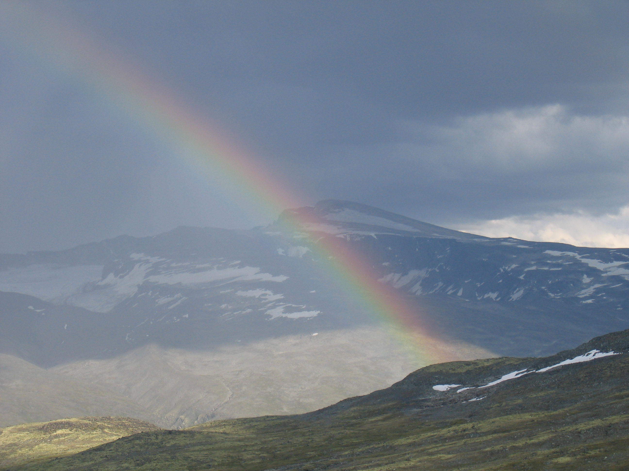 Det er nok Glittertind ja. Kanskje ikke den vanskeligste, men regnbuen var fin. Legger ut en til. Det er nok mange som har sett denne fjellformasjonen. I september hadde den fått et fint dryss med melis. Men hvor?