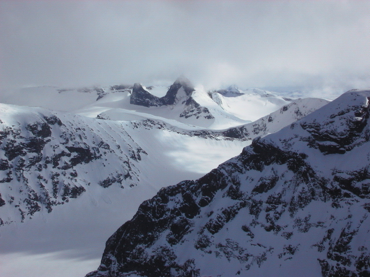 Du har selvsagt rett Bjarne. Bildet viser skyggen av Kyrkja nede i Kyrkjeglupen. Er det noen som kjenner igjen noen av toppene på neste bilde?