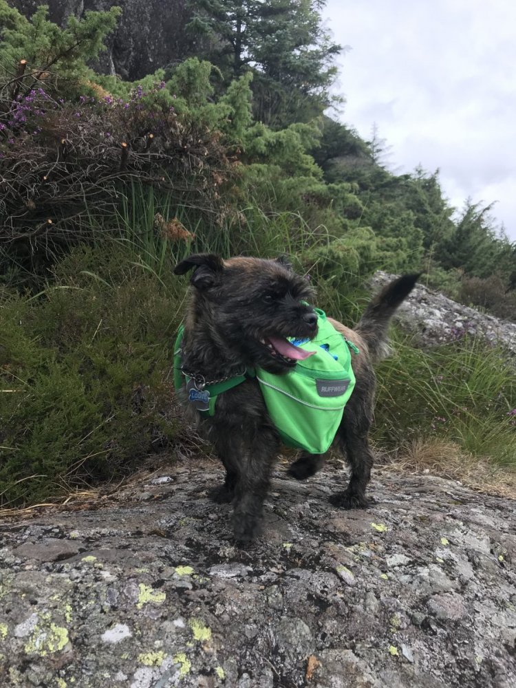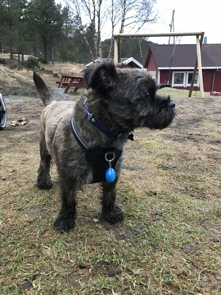 Blanding mellom griffon og west highland white terrier på 2,5 år. Elsker å springe på fjellet, joggeturer og å dra guttungen på sparksykkel. Sprek liten tass. Gleder oss til å begynne å ta han med på lavvoturer