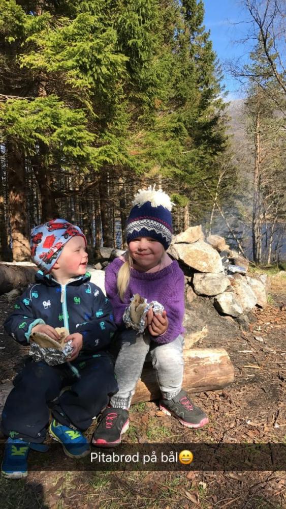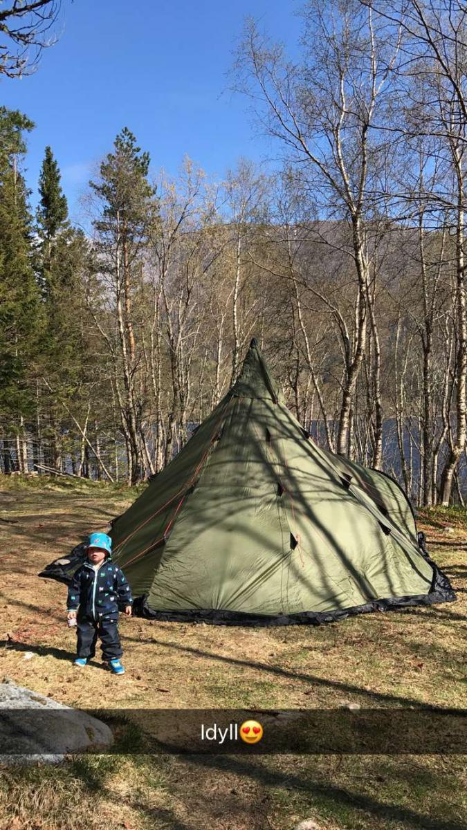 Kom oss på våres første tur med nyinnkjøpt turutstyr på lørdag. Reiste hjemmefra kl14 pga barnebursdag. Fant en fin plass i Fannedalen utenfor Ålesund, så vi kunne kjøre helt frem til campen. Jeg og mannen synes det var litt kjølig på natta, men barna var god og varme. Minsten sov dårlig, så det var kjedelig. Men de 2 eldste sov kjempe godt. Barna er 1, snart 3 og 6 år gamle, også hadde vi med hunden som er en liten terrierblanding. våres beste dag på lang lang tid! Barna storkoste seg med å utforske naturen, og hjelpe til med bålet. Men til neste gang må jeg ha med mer mat, jeg undervurderte hvor mye mer barn tydligvis spiser på tur. Og jeg må finne en plan for hunden, han er tydligvis en frosspinn! På natten endte han opp inni soveposen min. Gleder oss til flere turer! Forhåpentligvis begge langhelgene som kommer så lenge været ikke er for ille😄