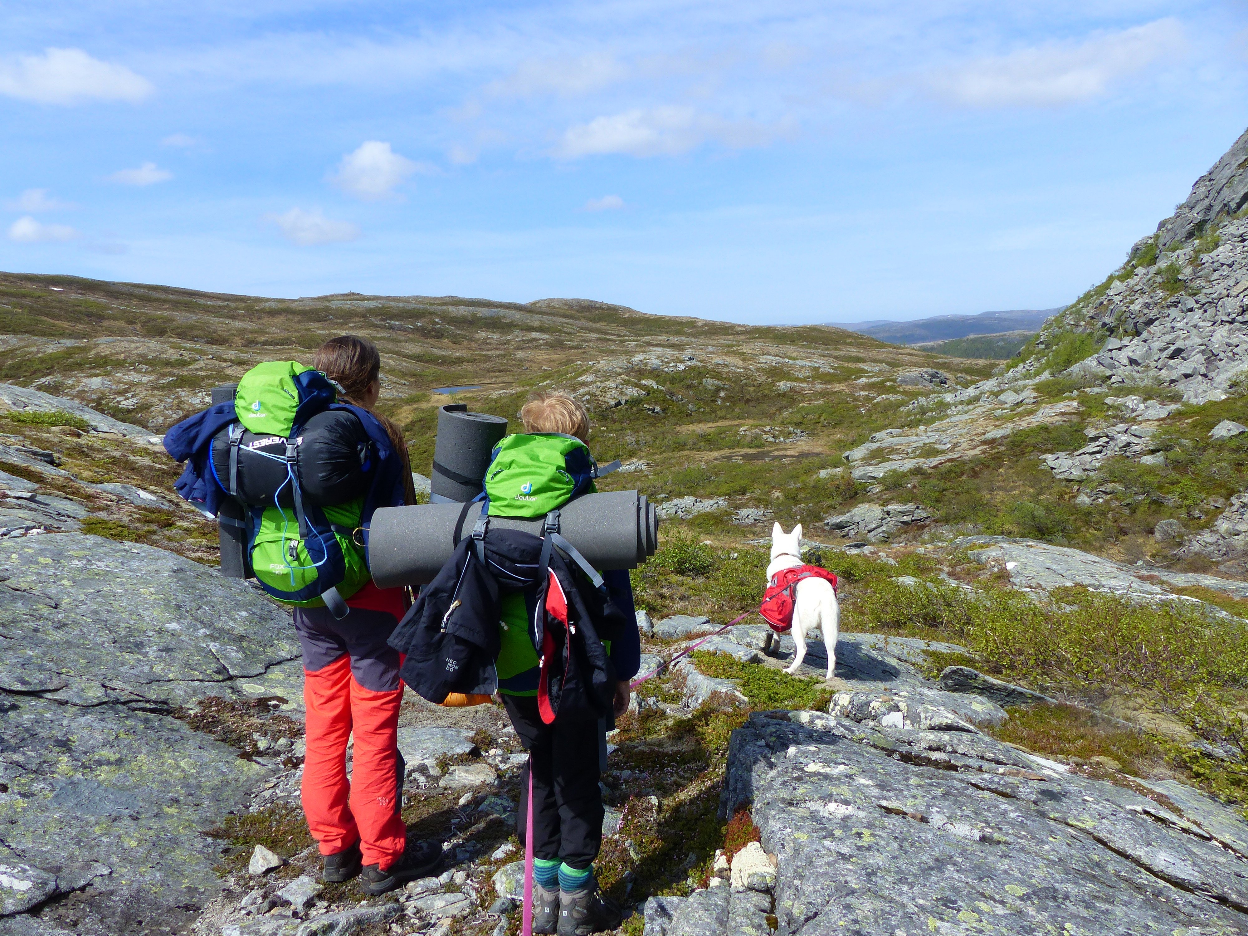 Fra hjemplassen min går det en gammel ferdselsvei over fjellet. Den er på ca 1 mil og jeg, voffen, gullklumpen og gullhøna la ivei en kveld i slutten av mai. Havskodda lå på toppene når vi kom til startpunktet, men ettersom vi skulle gå på sti, ikke særlig mange høydemeter og hadde med utstyr til overnatting la vi ivei likevel.