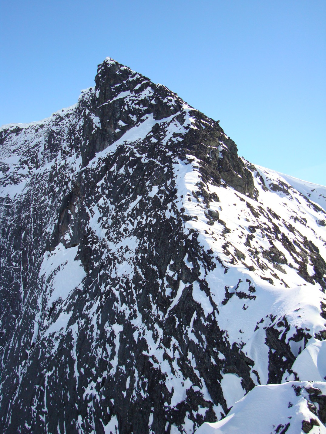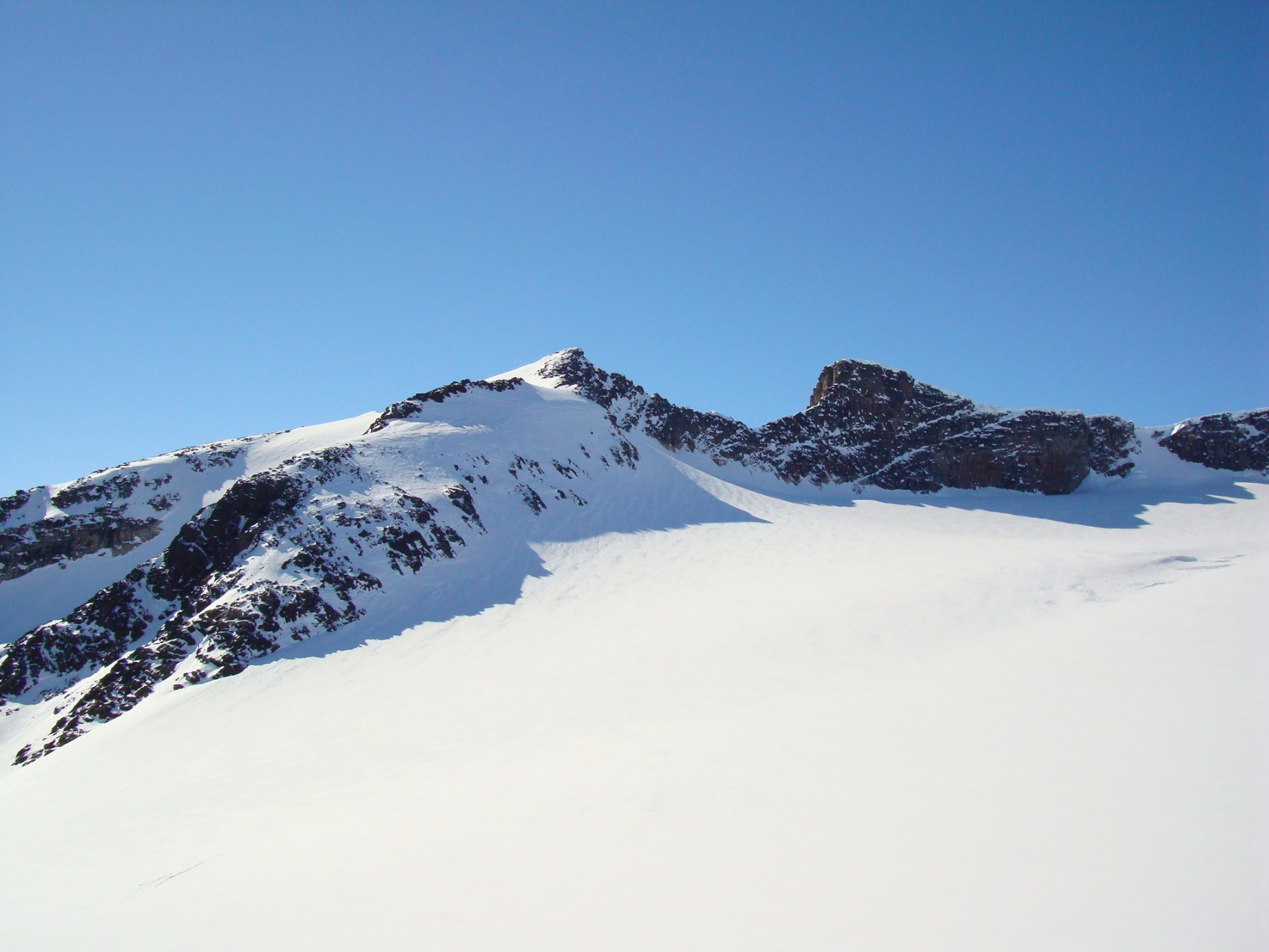 Rundtur på Rasletinder, Kalvehøgda og Leirungskampen 18. april 2009 Hvordan skal man beskrive en tur som de fleste andre har gjort ved åpningen av riksvegen på Valdresflya. Uansett, denne gangen måtte det litt planlegging til for å ”rekke” turen pga nattestengingen av valdresflya. Avreisen fra Bartebyen ble derfor noe tidligere enn vanlig for å komme meg på innsiden av bommen før den stengte for kvelden. Turen jeg skulle gå var kanskje litt av den lengre sorten, og en avtale i Bartebyen, førte til at eg måtte komme meg ned fra fjellet før det ”stengte” på lørdagskvelden. Vekkerklokken ringte 04.45, og det var rundt ti minusgrader inne i bilen da jeg våknet. Colaen som jeg hadde holdt flytende i soveposen smakte godt med en pose med Real turmat, og jeg var på veg innover fjellet litt etter kvart over fem. Dagens første mål var toppen var Østre Rasletinden, og jeg stod der klokken 07.15, med Valdresflya opplyst i pastellfarger. Vakrere kan det nesten ikke bli . Turen går videre over Rasletinden, Munken, Austre Kalvehøgde, Nørdre Kalveholotinden, hvor jeg tar en lengre pause når jeg kommer til Vestre Kalvehøgde noen timer senere. Treffer på en hyggelig kar jeg traff forrige kveld på Valdresflya Vandrehjem, og legger av til et kvarters pause og en prat der. Etter en hyggelig prat og noe å bite i må turen gå videre, jeg sier ”god tur videre” til denne karen, og ferden min går videre mot Leirungskampen. Vanskelighetsgraden stiger noen hakk da jeg begynner å bevege meg eggen mot Leirungskampen. Arne fra www.tinderangling.no hadde sagt at det kunne være litt vanskelig å finne riktig veg ned, og det stemte denne gangen også. Etter mye knoting frem og tilbake, opp og ned finner jeg en snørenne jeg følger litt ned for så å traversere et hylleparti for å omgå hammeren som sperrer for nedfarten. Skiene er til stadighet i vegen, og jeg kjenner til tider varmen av irritasjon inni meg nå skiene henger seg fast uansett hvordan jeg går, klyver og beveger meg. Eggen videre etter hammeren er ikke direkte enkel, og den blir ikke noe lettere med skiene på sekken og et par staver som ofte kommer i vegen når jeg må klyve på nedsiden av de småtoppene som er på eggen. To plasser må jeg et stykke ned og traversere over et par snørenner for å unngå et par utsatte plasser. Jeg går innom kandidaten som Arne mente jeg burde få med meg, og fortsetter å irritere meg videre når jeg må klyve et stykke ned her, og skiene henger seg fast i alt av stein og mose. Klyvingen mot Leirungskampen fra Kandidaten er ikke noe spesielt vanskelig, og jeg følger et hylleparti før jeg går i en renne som leder mot Leirungskampen. Ikke noe spesielt vanskelig opp denne. Jeg bruker lang tid mellom Vestraste Kalvehøgde og til Leirungskampen, og tempoet må opp om jeg skal ha litt margin til stengingen av vegen. Det går ikke videre raskt å gå ned nordvestryggen av Leirungskampen da det er klaris ned mesteparten av skråningen. Etter ca hundre meter med ytterst forsiktig gange finner jeg ut at det ikke går, og at jeg må ha på meg stegjern. Idet jeg setter sekken på bakken, og drar ut stegjernene forsvinner Nalgene flasken min utfor kanten og forsvinner ned mot vannet som er vest for Svartdalsbandet på ca 1500 moh. Den som måtte finne en blå Nalgene flaske der må gjerne sende en PM til meg… Uansett, med stegjernene på går ferden mot Svartdalsbandet lettere og det tar derfor ikke så altfor lang tid før jeg er nede i dalbunnen. Siden vannflasken er borte så har jeg ikke noen grunn til å ta noen pauser før jeg treffer riksvegen (for den som måtte lure så hadde jeg i løpet av turen drukket halvannen liter med vann allerede). Turen ned Leirungsdalen går bra med unntak av det lille stykket fra Svarthåmmarbue og til riksvegen. Arne plukker meg opp, og kjører meg til Valdresflya Vandrehjem (litt hjelp må man jo unne seg). Etter tolv og en halv time avsluttes dagen med et godt og lett måltid på Bessheim før turen går hjem til Bartebyen -