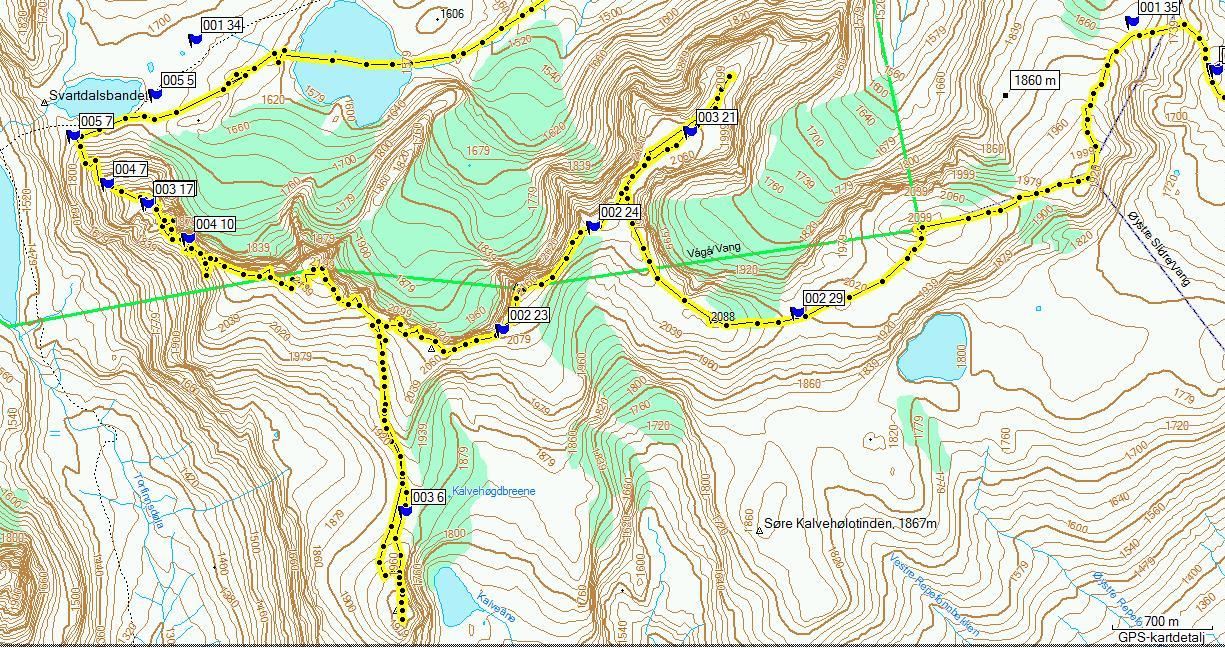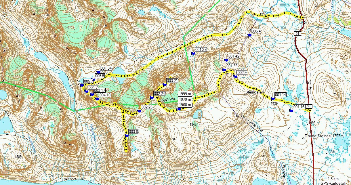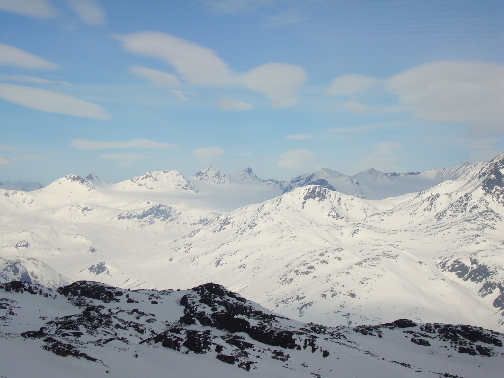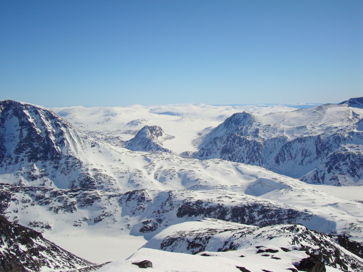 Heisann Øyvind. Kart kommer nok i begynnelsen av neste uke tror jeg på. Det var sånn ca ti mil på tre dager regnet jeg med frem til. Halvparten på truger.. Hehe, det var nok vindfullt i Rondane også ville jeg tro, men tror jeg faktisk akkurat var i grenseland for det dårlige været, for jeg hadde god sikt nordover hele tiden faktisk (med unntak av noen skyer en gang i blant). Utsikten på lørdag var helt fantastisk, men synd av vær-vinduet ikke varte mer enn i to dager i Jotunheimen.. Selv om ikke sikten var altfor dårlig på søndag, så har jeg begynt å like fint vær jeg også