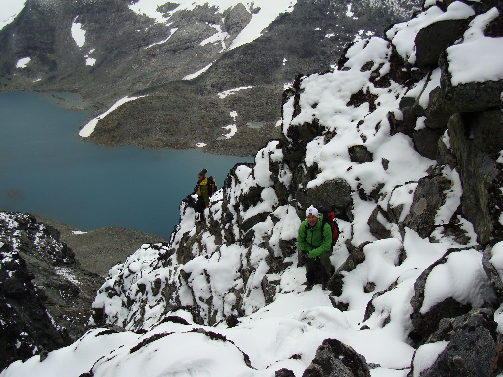 Oyvindbr: Du sier at det er ekkelt å være nervøs når man klyver, jeg er noe uenig er. Det er alltid viktig å være litt nervøs før du gjør noe som kan oppfattes som vanskelig. For min del så skjærper det sansene til det fulle, og det gjør at jeg forhåpentligvis tar de riktige avgjørelser. Men ha 'in mente' at du ikke bør være så nervøs at du utvikler fobier og redsler for å gjøre noe lignende senere. Jeg synes selvsagt at det er litt forskjell på det å være redd og være nervøs.. Det er mange som er nervøs for å snakke i større forsamlinger, men du blir redd for livet om du blir siktet på... Sitter og tenker litt på denne turen enda, og kan nesten ikke vente til neste gang jeg få komme meg ut.. Har noen planer til utover høsten, men begrenset dagslys og nysnø vil nok legge en demper for like lange turer... Håvard: Appropo, blir nok å anskaffe meg nye såler til helgen, men vinteren setter snart inn, og ullsålene må nok snart puttes inn i skoene på nytt, og de tekniske fjellskoene settes på hylla for denne gang.. Gunnar: "Test of character" ja, det var nok en indre kamp begge dagene som jeg måtte kjempe i mot, men hvor godt er det ikke å ha gjennomført noe som man egentlig ville snu på.. Høsten, vinteren og våren vil nok by på mange fine turer, men jeg har igjen et par lengre dagsturer i nytt (men ikke ukjent) terreng til neste år også Alex