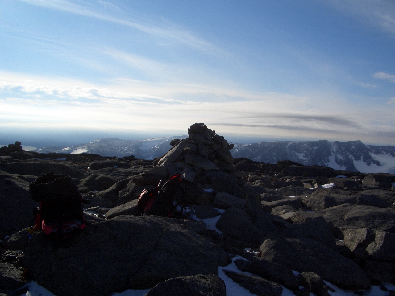 Man lærer så mangt på turer i fjellet, hvor at både jeg og Mayhassen sitter igjen med forskjellige lærdommer som begge snakket om over burgeren på Lom. Min lærdom var at jeg ikke kunne stole hundre prosent på en truge, hvor at vi lærte at kontroll av utstyr kan være skjebnesvangert for en tur. Snu i tide er også verdt å nevne, men skal ikke nevne det noe mer da Mayhassen allerede har sagt det. På veg til Sognefjellet, etter et tosiffret anntal mil, og med truger til en verdi over fire siffer var vi begge målbevisste og hadde et tydelig bilde av hva vi skulle gjøre. Værmeldingen på yr.no (som jeg opplever å ha vært byttet ut med en annen webside denne uken) lovte mye bra. Sol og blå himmel var spådd av Meterologene, hvor at vi hadde opplevd pinlig nøyaktige varsler tidligere, håpte vi på at terningkastene til meterologene stemte denne dagen og.. Skyene preget toppene rund omkring på sognefjell, men med lovnader om at de skulle lette rundt klokken 1200 gjorde det ingenting da vi planla å stå på toppen rundt det tidspunktet. Vi startet å gå klokken 0800, men allerede klokken 0930 opplevde undertegnede å tråkke i stykker den nyinnkjøpte trugen (merket kan jeg snakke om ved en senere annledning eller på pm) etter bare 3,5 km. Avgjørelsen om snu tok ca 0,02 sek å ta, hvor at jeg jaget Mayhassen videre med lovnad om at jeg kunne haike til Lom.. Etter at jeg snur fra bunnen av Smørstabbreen, og trasker rundt en kilometer ser jeg at Fanaråken bades i sol. Tenker da at at været ikke er så ille allikevell, og at det hadde nok vært fint å kunne gå til toppen. For min del erfarer jeg hvordan det er å tråkke med en operativ truge, og en ikke fullt så operativ i min venstre hånd. Snødybden varierer mellom 0,5 m og 2,0 m.. En telefon fra Mayhassen bekrefter allikevell at det ikke er så fint på toppen, hvor at han vanskelig med å tro at det kan være sol på toppen av Fanaråken. Kommer tilbake til bilen og Sognefjellhytta svett og sliten, med rare tanker om hvor tungt det kan være å gå 3,5 kilometer med bare en fungerende truge.. Til den som lurer på det med truga.. Dro til XXL mandag bare fire dager etter at jeg kjøpte den, hvor at jeg kjøpte en mye mer solid og kraftig truge. Etter min og Mayhassen studie av truga, fant vi noen skremmende svakheter i konstruksjonen. Bindingen var festet med en liten og puslete bolt i selve rammen av trugen. Bolten befinner seg på undersiden av rammen på det stedet som blir desidert mest stresset av hele trugen. Denne bolten løsnet slik at rammen mister mister mye av sin styrke. Dette gjorde igjen at hele greia knakk, og at jeg måtte gå tilbake. Den som drar til fjellet og føler seg utlært må kanskje tenke en gang til hva man driver på med. Både jeg og Mayhassen måtte krype til korset og innrømme at det var mye som enda ikke var oppdaget, og som skal bli oppdaget ved senere annledninger.. Alexander