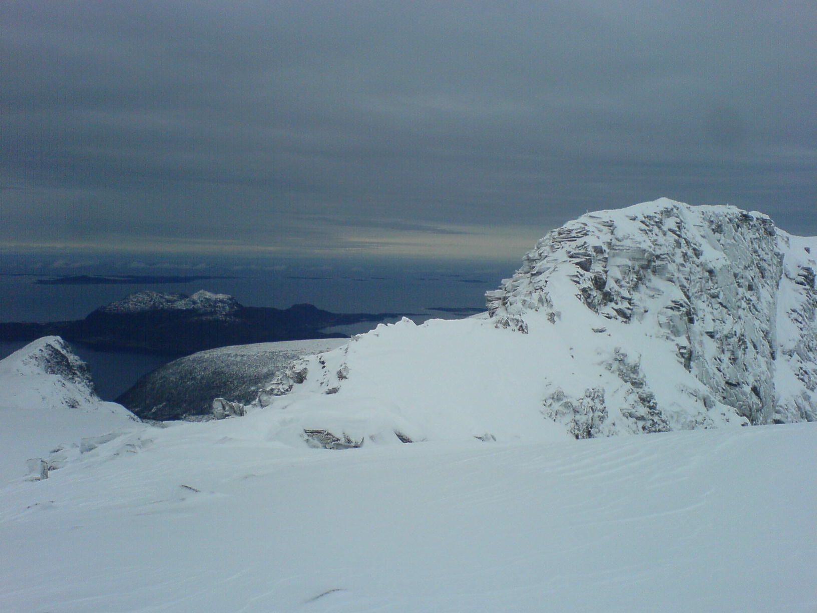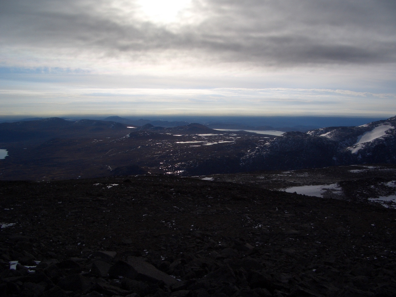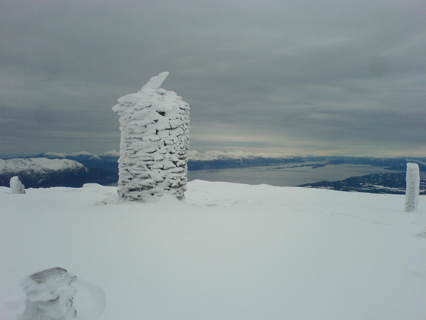 Etter en halveis mislykket trugetur på Sognefjellet, så hadde jeg noe mer tro på de mer enn dobbelt så dyre trugene jeg hadde fått tak i til nå.. Parkerte bilen ca 500 meter ovenfor Krogsætra i Haram-kommune ved en relativt dårlig brøyta parkeringsplass rett ved en fe-rist ... Etter en liten skifteseanse var jeg på veg oppover med trugene på bena.. Snøen var noe råtten i begynnelsen, men så fort jeg kom til ryggen ved 580 moh ble den en del tørrere, og letter å gå på.. Utsikten fra denne toppen skuffer meg aldri, hvor at det varierer fra havet i vest med Midsund og Sandøya, hvor at vi har Molde og Normøre i Nord, Ålesund i sør, og en del Sunnmørsfjell i Øst... Ikke mange som hadde besøkt denne toppen, i alle fall ikke registrert seg den siste måneden... Var en person som hadde skrevet seg inn den 4. nov, noe som tyder på at fjellet får ligge i fred i noen måneder hvert år... Dårlig utstyrt med kamera var jeg, slik at de eneste bildene som ble tatt, var av den 2.0 Megapixel telefonen jeg hadde i lomma.. Trugene holdt de 800 høydemetrene i dag kontra den mere mislykkede turen på Sognefjellet.. Alexander