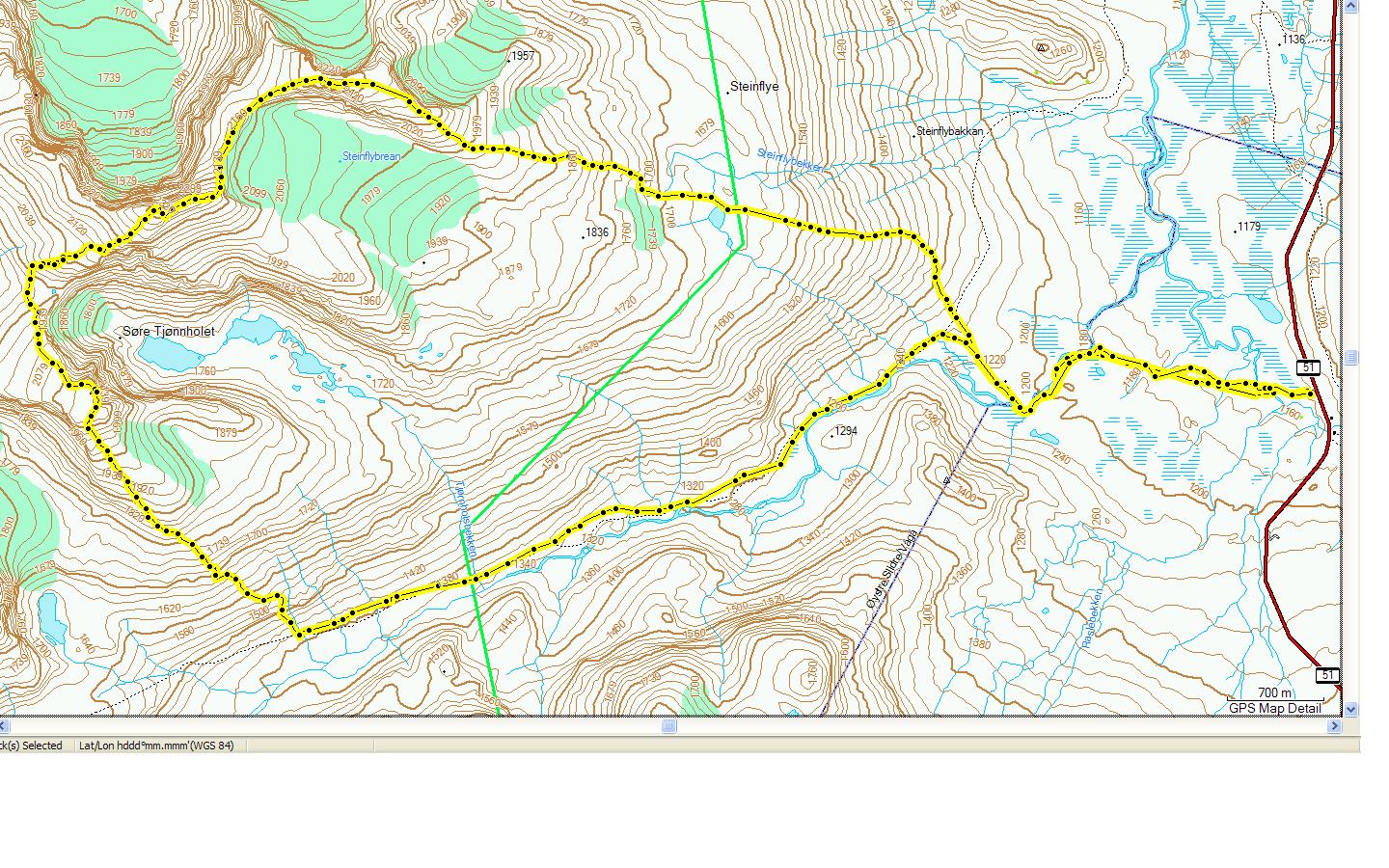 Etter å ha avtalt med atomsilda, bestemte vi oss for å møtes litt ovenfor Vargbakkan lørdagsmorgen. Jeg skulle overnatte i telt fra fredag til lørdag, hvor atomsilda, skulle møte meg ca klokken 07.00 på lørdagsmorgen. Da jeg parkerte bilen fredag klokken 22.30 viste temperaturmåleren minus 4 grader, noe som jeg tror ikke var det laveste den natten siden det var blå himmel. Min første frostnatt på ett halvt år i telt. Slumrefunksjonen på mobiltelefonen er en dårlig oppfinnelse, da jeg fant ut at det var litt vanskelig å komme seg ut av en sovepose med rim og is på.. Startet å gå klokken 07.20, tyve minutter senere enn planlagt... Været: Værmeldingen for helgen spådde at det skulle komme en front fra sør – øst. Den var spådd å komme ca 14.00 lokal tid, men den kom 2 timer for tidlig. Var kaldt med minusgrader fra da jeg var der fredag, og frem til klokken 12.00 lørdag. Etter klokken 12.00 ble det dårlig sikt, kuling i kastene, 50 meter sikt og ganske tett regn. Høgdebrotet (2226 moh): Lett å bestige, med unntak av noe elvekryssing ikke langt fra riksvegen. Slak og fin stigning til toppen, uten noen spesielle vanskeligheter. Fra toppen så vi at fronten låg noen mil sørafor, og med de typiske cirrus skyene (de som ligner på skitupper), som varsler dårlig vær visste vi at den ikke lå så altfor langt unna i tid. Steinflytinden (2318 moh): Begynte å blåse mye da vi fulgte ryggen opp fra Høgdebrotet, mot denne toppen. Ikke noe spesielt utfordrene siden vi hadde isøkser å sikre med da vi krysset en snøskavl på veg mot toppen. En artig topp med en stor stein som symboliserer toppunktet. Tjønnholstinden (2329 moh): Dagens utfordring var å komme seg ned til skaret mellom Steinflytinden og Tjønnholstinden. Utfordringene var ikke av det store slaget, men i en kombinasjon med kuling i kastene, og nedbør i form av regn gjorde det at det ble en utfordring. Ved hjelp av isøksen gikk dette ganske greit. Regnet ble bare mer og mer intensivt på denne toppen, hvor at sikten falt til 50 meter. Tjønnholsoksle (2145 moh): Det var en ufordring å ta seg fra Tjønnholstinden til Tjønnholsoksle siden de metrologiske forholdene ble ganske ille. Fra å være noen minusgrader til å bli plussgrader, førte det til at alt regnet som la seg den første halve timen ble til glassert is på alt av steiner. Dette førte igjen til at det ble veldig glatt. Fikk ikke sett så mye av toppen, annet enn to varder og noe tåke. Alexander