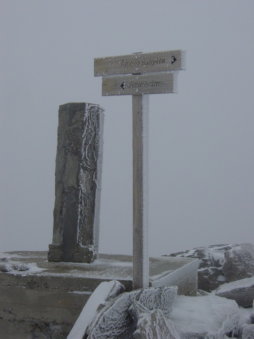 Etter mange relativt utrygge værmeldinger før helgen, forkjølelse og en åpningsbeercall på fredagen, bestemte vi oss allikevell for å dra til Dovre før sola stod opp søndagsmorgen. Etter å ha snakka med fadern som fortalte om stormen som hadde feid forbi på vestlandet fredagsnatten, var ikke skepsisen til været mindre. Noen gode glass med rødvin tidlig på lørdagskvelden ga meg likevell lyst til å pakke sekken, og gjøre meg klar for en tur i fjellet. Det var meldt snø, og snø kan vell ikke være så gale, man blir jo i det minste ikke våt om snøen er tørr Åpningstidene på vegen inn til Snøheim var ikke de mest vennlige for B-mennsker, men vi klarte må allikevell å komme oss opp til klokken 04.00 på søndagsmorgen etter noen veldig få timer søvn. Kjørte til Dovre og kom til bommen med en halv times margin før den stengte klokken 08.00. Regnet ut at jeg hadde gått innover Snøheimvegen 6 ganger til fots, sykkel og ski det siste året, hvor jeg var veldig takknemlig for å kunne kjøre bil de 13 laaange kilometerene fra militærstasjonen og til bommen ved nasjonalparken. Temperaturen sank fra 5 plussgrader ved Hjerkinn til 2 grader der jeg parkerte bilen. Snøfluksene i lufta tydet på at temperaturmåleren i bilen ikke tok så mye feil, hvor vi var glad vi slapp det meget kraftige regnet vi opplevde fra Trondheim til Oppdal. Min tredje tur på Snøhetta, hvor at jeg opplevde fint lite nytt, med unntak av en lemmen 100 meter før linkstasjonen på toppen av Snøhetta. Ikke ofte jeg ser slike små krabater i slik en høyde, med snøfokk på alle kanter. Det ryktes at lemmenen er et sint dyr, men tror at den havnet i skyggen av de glosene jeg benyttet meg av da jeg skled på noe nysnø og svartmose 50 meter før linkstasjonen (rett etter jeg så lemmen). Var sekunder unna å svime av hvor jeg så stjerner på alle kanter, kjente at mageinnholdet hadde lyst å komme opp og at jeg ble skikkelig kald. Prøvde å ta for meg med hånda, men resultatet var fire store kuler på høyre leggskinn og fire timer å vente på St. Olavs søndagskvelden da jeg kom tilbake til Trondheim. Fikk smerter i hånden ganske kjapt, men det var først under middagen på Oppdal (var på toppen klokken 12.30, og var på Oppdal klokken 16.00) at smertene kom skikkelig. Legen visste ikke ut av røntgenbildene om det var et knokkelbrudd eller en forstuelse. Knokkelbrudd er visst ganske kritiske skader, hvor at en må minst gå 8 - 12 uker med gips. Mine erfaringer fra denne uskyldige turen var: - Svartmose med nysnø er sinnsykt glatt, så vær forsiktig. - Brudd i knokkelben i håndleddet er kjipt. Får gjort lite fornuftigt med en gipsa hånd. - Mvh Alexander