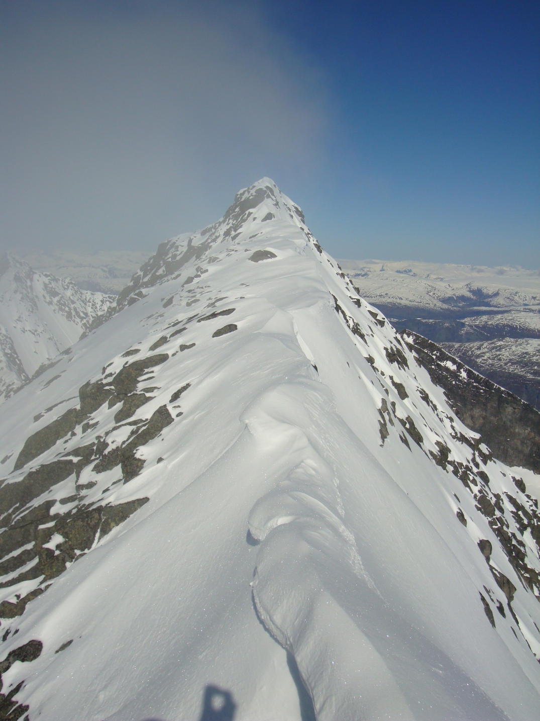 Hehe, har blitt et par topper, fikk mange fine opplevelser den ene uken jeg traff med været Kan vell egentlig si at det var litt utsatt klyving opp til Midtre ja Hadde jeg vært sikret i et tau hadde det nok føltes litt bedre.. -
