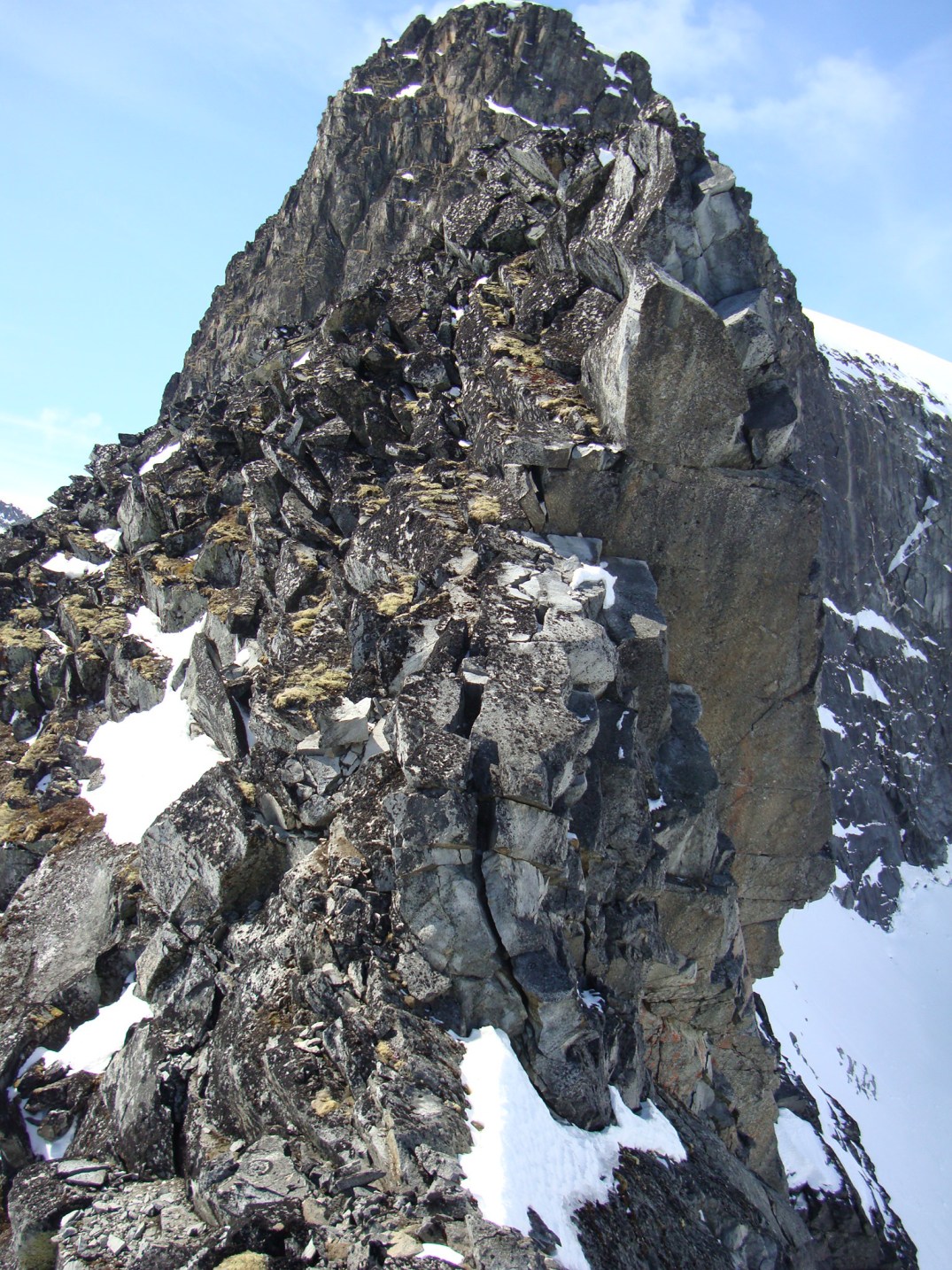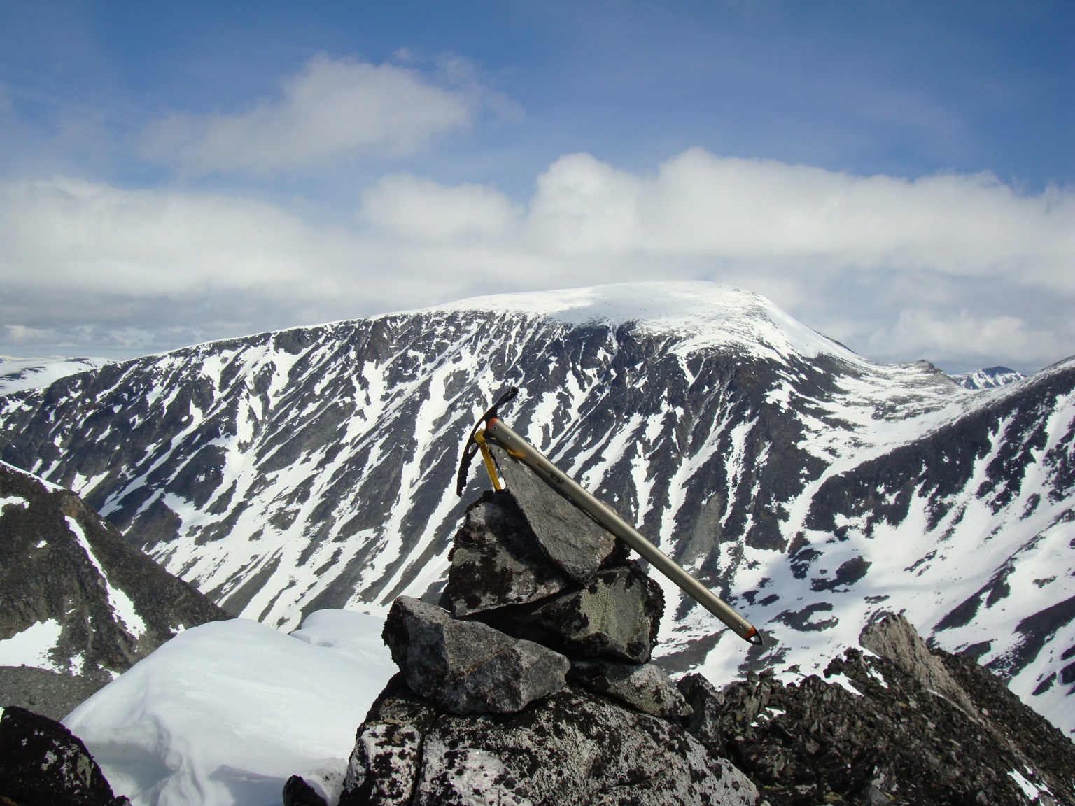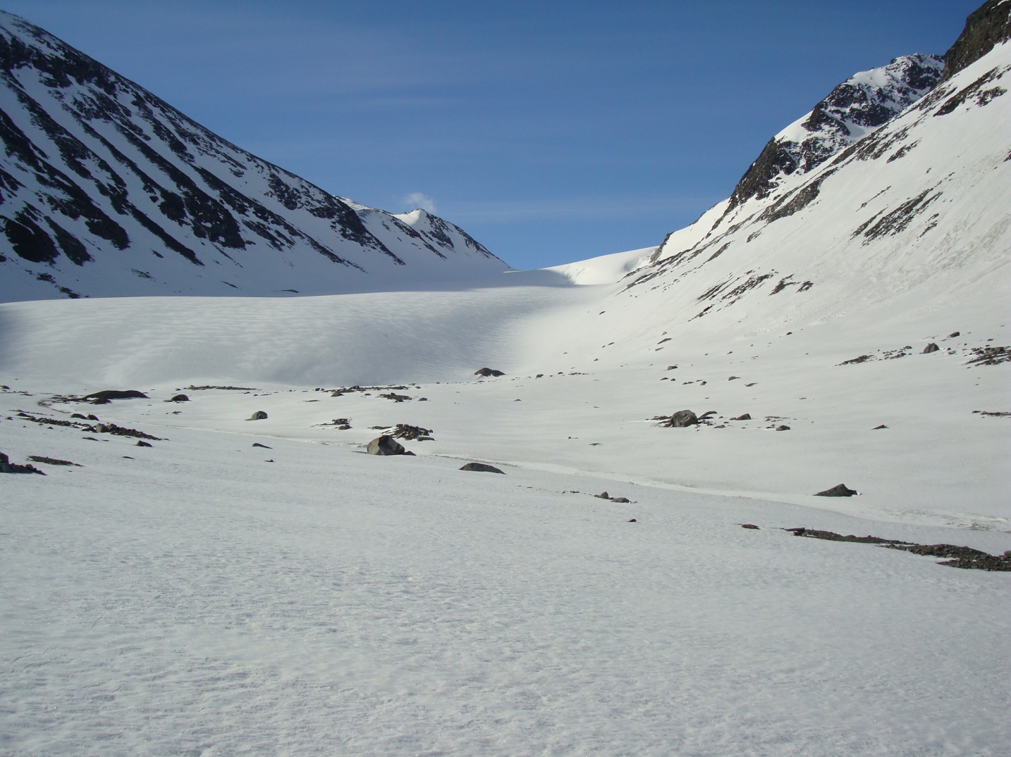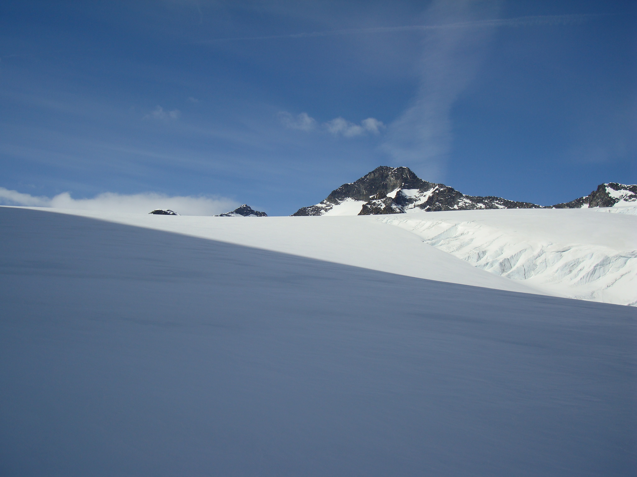 Topptur på Skagsnebbene, Hellstugubreahestene og ”Hellstugupiggen” 5. og 6. juni. 2009 Kjørte fra Bartebyen torsdags kveld etter et bedre måltid. Jeg ble noe overrasket over snøfall på Kongsvoll og Fokstua på veg over Dovrefjell. Tankene var da, jaja det er nå i alle fall nysnø i fjellet. Og nysnø ble det da jeg våknet med 2 cm nysnø på bilen fredag klokken seks. Fredag 5. juni Nysnøen gjorde sitt til at jeg slo av vekkerklokken, og sov et par timer ekstra i posen. Klokken åtte så det ut som været begynte å bli bedre, og jeg spiste en boks med turproviant mens jeg så noe skeptisk på fjellene som var dekket med skyer. Jeg stakk derfor en tur oppom Krossbu og kjøpte meg en kopp kaffe og en sjokolade mens jeg ventet på bedre vær. Værmeldingen så veldig bra ut for dagen, og skyene som gjorde meg skeptisk skulle forsvinne ganske så kjapt. Turen startet litt over klokken ni, og et par timer senere står jeg på Hurrbreatinden som jeg for øvrig hadde vært på akkurat for et år siden på dagen. Setter fra meg ski og staver her, og tar på meg stegjern. Finner etter hvert ut at stegjern ikke er nødvendig på store deler av strekning, men latskap gjør sitt til at jeg ikke orker å ta dem av. Klyvingen er morsom fra Hurrbreatinden og til Bakarste Skagsnebb. Det blir bare en kort drikkepause på toppen før ferden går videre mot Fremste Skagsnebb. Jeg har lenge gått og fryktet at det skulle være vanskelig å ta seg ned til Fremste Skagsnebb, men det kan hende at det gode føret denne dagen gjør at det ikke er så altfor ille, da jeg syntes at klyvingen mellom Hurrbreatinden og Bakarste var vanskelig. Det tar ikke så altfor lang tid å komme meg ned på det laveste punktet mellom Bakarste og Fremste Skagsnebb, og herfra går det raskt frem til toppen. Utsikten fra toppen av Fremste Skagsnebb er helt fantastisk, og man får virkelig følelsen av å stå på en topp da bilvegen er mer enn tusen høydemeter lavere enn i forhold til meg. Turen tilbake til Hurrbreatinden går greit, og jeg får faktisk til å stå på ski helt ned til bilen som er parkert ved Krossbu. Dagens tur varte på rundt seks og en halv time, og det var ikke et eneste menneske i syne selv om skiføret var perfekt og blå himmel. Lørdag 6. juni Etter en natt i bil ved Spiterstulen våknet jeg til frostrøyk og is på bilvinduene. Temperaturmåleren viste minus fem grader, og det tok derfor litt tid å stå opp. Klokken halv syv var jeg ferdig pakket og hadde spist en god frokost. Jeg tar på meg skiene ca en kilometer før bretungen og etter tre og en halv time setter jeg fra meg skiene og ryggsekken ved hytten til NVE på Søre Hellstugubreahest. Tar meg en kjapp tur oppom toppunktet før jeg spenner på meg skiene og går til Nørdre Hellstugubreahest. Det er ikke noe spesielt vanskelig å ta seg opp på denne, og jeg returnerer til hytten på Søre Hellstugubreahest. Tar meg en lengre pause her, og nyter utsikten utover breen. Utsikten er fantastisk, og et helikopter flyr over breen mens jeg slapper av. Jeg spenner på meg skiene igjen, og renner i sporene mine et stykke før jeg skifter kurs over breflaten mot Hellstugupiggen. Det er ikke mange sporene på breen, og enda færre (ingen) spor til Hellstugupiggen. Etter å ha parkert skiene i kanten mellom fjellet og breen går jeg snørennen som ender opp litt til høyre for toppunktet på ryggen. Snørennen er bratt, men går greit med stegjern og isøks. I fra det siste hakket og til toppunktet må jeg omgå litt til venstre for å unngå å gå rett opp steinblokken som blokkerer vegen. Omgåelsen til venstre er grei, og jeg følger noen hyllepartier til toppen. Det er godt å stå på toppen, og selv nå når klokken er to på dagen er det ikke et eneste menneske å se på noen av toppene i nærheten eller på breen. Det er litt rart å stå alene her inne med blå himmel og perfekt skiføre en tidlig dag i juni. Jeg kommer meg ned på breen, og renner så langt det er snø i dalen. Tar av meg skiene, spenner disse fast til sekken og er ved Spiterstulen en liten time senere. Har da brukt syv timer og femti minutter på dagens tur.