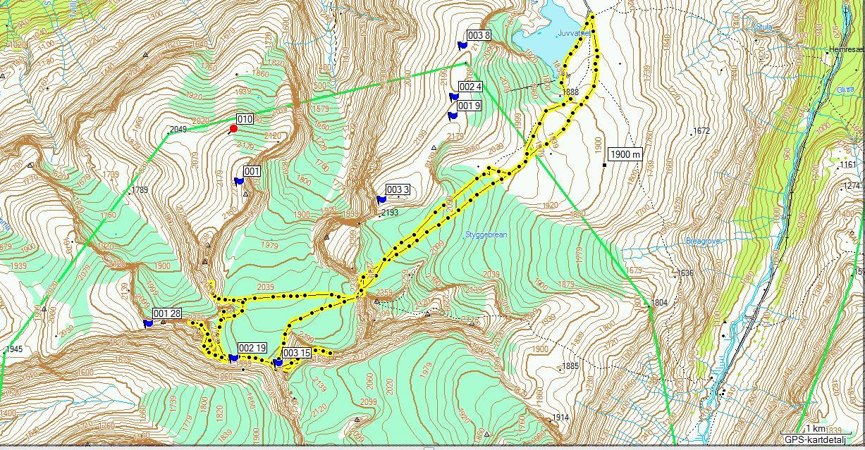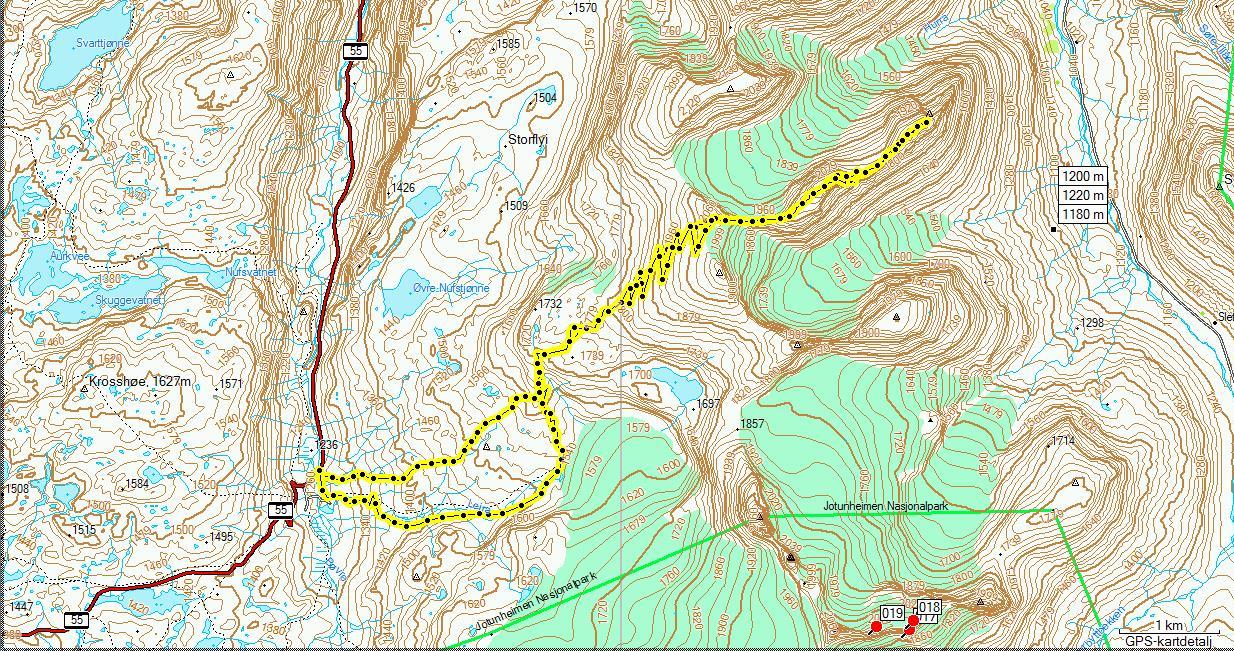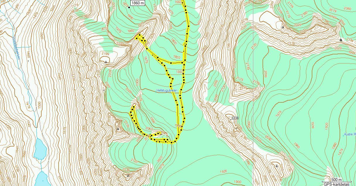 Tar meg en liten frihet til å legge inn GPS' tracken.. Er en liten feil på ruteloggen ned fra Skardstind da vi fulgte i samme sporene ned som på veg opp.