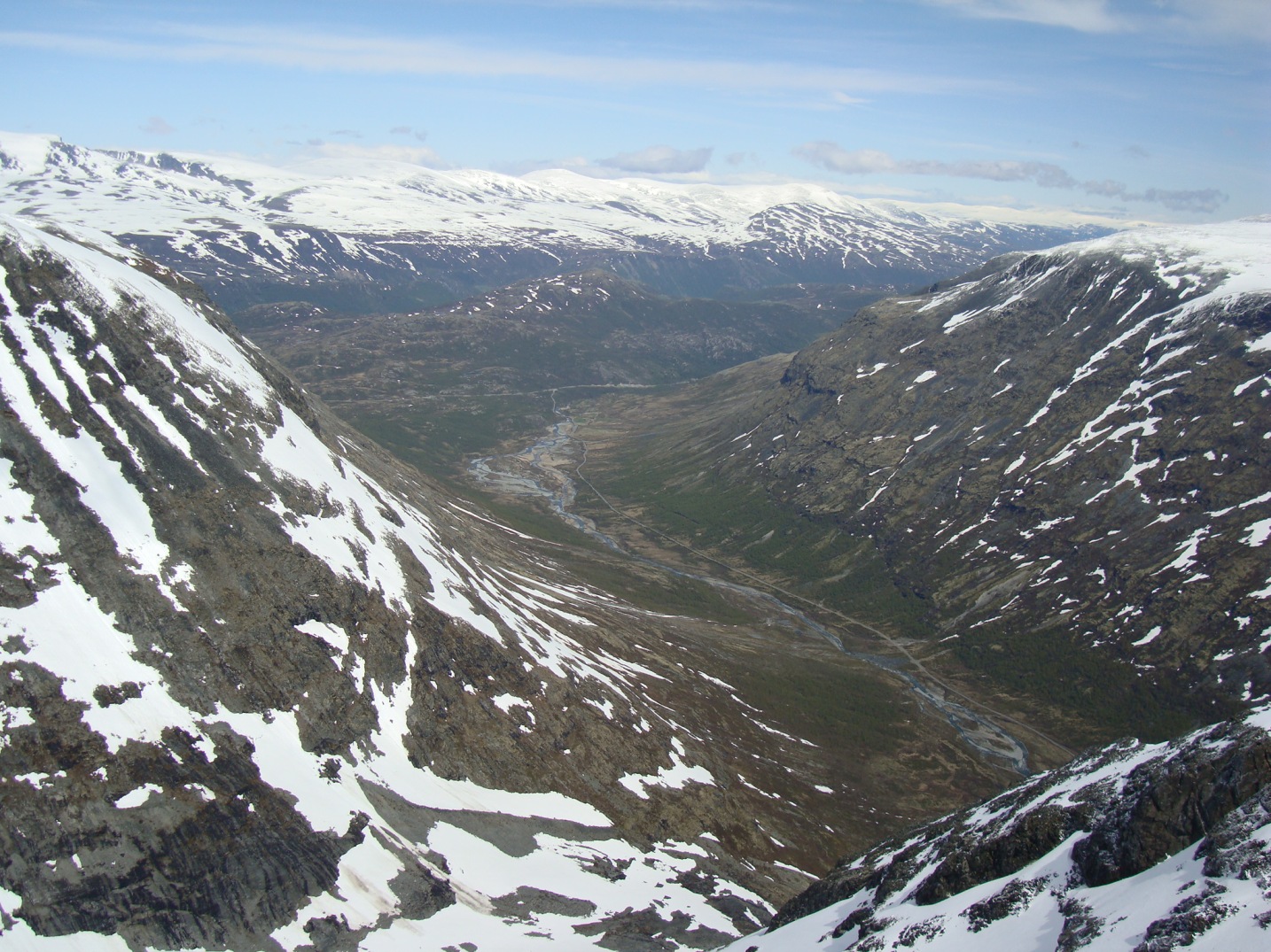 Første del av sommeren 2009 Når man lar det drøye til det kjedsommelige ender det ofte med at det er noe tungt å skrive en turrapport. For denne gangen lot jeg det drøye vell en måned med å skrive, noe som skyldtes blant annet en skoleavslutning og flytting for å nevne noe. Jeg skriver kort om hver tur (selvsagt i kronologisk rekkefølge), og nevner kort det som er verdt å nevne. Er det spørsmål er det selvsagt bare å spørre i veg. Beklager om det blir mange bilder og kart, men som leser håper jeg at du forstår at det er begrenset med plass i en rapport. Søndag 14. Juni En liten ”pausetur” til Jotunheimen var denne turen ment å være i midt av stresset med flytting og avslutning. Jørn kom overraskende på meg da jeg hadde parkert ved bommen i Leirdalen. Blir med til Geitsetre og spiser noe mat sammen og diskuterer morgendagens tur der. Jørn skal på Dumhøe og Vestre Skardstind, mens jeg skal på Storgrovtinden. Kort fortalt starter vi ca samtidig, Jørn på Geitsetre og jeg ved bommen til Leirdalen. Da jeg står på Bakarste Storgrovhøe står Jørn på Vestre Skardstind. Tar noen bilder siden man kom over skyende denne dagen. Klyvingen til Storgrovtinden var ikke noe stress, og ikke noe å grue seg til. - 30.1 Storgrovtinden – 2229 moh Fredag 26. Juni Et finere bakteppe for tur skal man lete lenge etter. Godt og varmt, nesten ingen andre på Spiterstulen (betjeningen kunne oppleves som trivelig, til motsetning en uke senere). Sunniva var og jeg hadde tidligere i vinter prøvd oss på Galdhøpiggen, men snudd ved ca 2000 meter pga noen innkommende snøbyger. Denne toppen hadde vi for lenge siden bestemt oss for at skulle bestiges i fint vær, og ja, denne dagen var været helt perfekt. Vi gikk i et rolig tempo fra Spiterstulen, og etter halvannen times gange går vi forbi et amerikansk par som ikke helt var kledd for en uværsdag i fjellet. Mannen i joggesko og dongeribukse, mens damen gikk med en liten skuldeveske, piratbukse og joggesko. Jaja, man kan jo gå i det man vil, og det var kanskje greit at været var fint denne dagen med tanke på hvordan folk kler seg for fjellet. Det ble en time på toppen hvor medbrakt kaffe og kjeks smakte utrolig godt. Returen til Spiterstulen gikk fort, og spekemat på Oppdal avsluttet fjellturen for denne gang. Lørdagen gikk med til å bestige Blåhøe i Trollheimen (siden jeg har skrevet så mange ganger tidligere om denne toppen gjør jeg det ikke nå). - 1.2 Svellnose – 2272 moh - 1.1 Keilhaus topp – 2355 moh - 1.0 Galdhøpiggen – 2469 moh Mandag 29. Juni Tja, hva skal man si, jeg damen med rullekoffert på kaien ved Gjendesheim iført et antrekk ikke helt ulikt det amerikanske paret som jeg tidligere nevnte, sjokkerte meg ikke akkurat med tanke på hvilken populær fjellrute som var i nærheten. Etter å ha kommet i land ved Memerubu gikk ferden min opp Memerudalen. Etter åtte kilometer føltes sekken mer enn tung nok og jeg satte opp teltet mitt der og etterlot det som jeg ikke ville trenge på toppen (vil nesten si alt). Ikke så mye å si om toppen på Surtningssue, men var jo morsomt å være der oppe i fint vær. Hytten var nyrestaurert siden jeg var der sist, men det manglet dørhåndtak, Ved en eventuell storm og man må søke ly vil jeg anta at døren vil stå og slå en del siden det kan være vanskelig å lukke den. Turen tilbake til teltet gikk greit, hvor jeg legger meg klokken halv åtte og sover helt frem til lyn og torden vekker meg klokken tre på natten. Teller ti sekunder mellom blink og smell, og jeg ligger der og lurer på hva jeg skal finne på om det nærmer seg. Heldigvis gir tordenværet seg og smellene blir stadig lengre unna. - 7.1 Surtningssue Sørtoppen (S1) – 2302 moh - 7.4 Søre Surtningssue (S2) – 2120 moh Tirsdag 30. Juni Etter en lang natts søvn, avbrutt kort av tordenværet, er jeg klar for en dag i fjellet. Sekken blir ca like lett som den forrige dagen, og jeg følger i sporene til en gruppe som hadde gått i retning Styggehøbreaskaret dagen før meg. Klatringen over til Søraustre Styggehøbreatinden føler jeg som veldig luftig, og pulsen over her er ganske høy. Bruker ca et kvarter på veg tilbake, og det er mye lettere å klyve tilbake enn frem til toppen. Synes jeg hører noe buldring i det fjerne, og den mørke horisonten i sør og øst kan tyde på tordenvær som nærmer seg. Jeg går på Søre Veotind, og klyver ned mot Store Veotinden. Jeg snur ca midt i mellom toppene da jeg ikke tør å følge snøkanten, eller å bevege meg ut på breen. Jeg går tilbake til Søre Veotinden, og skuer ut mot horisonten i sør og øst. Det mørke nærmer seg stadig, men det er ingen buldring, så jeg tar sjansen på at det ikke er tordenvær i skymassene. På Austre Memerutind siver skyene inn, og jeg må gå ned fra fjellet med 20 – 30 meter sikt. Dette gjør at jeg ikke ser grushaugen som jeg i etterkant fant ut var en topp. Må derfor tilbake dit om jeg skal fullføre samlingen. Returner til Memerubu samme kveld for å ta båten videre dagen etterpå. - 41.2 Nord for Nørdre Blåbreahøe – 2140 moh - 41.1 Sørvestre Styggehøbreatinden – 2220 moh - 41.0 Søraustre Styggehøbreatinden – 2232 moh - 27.0 Søre Veotinden – 2267 moh - 21.0 Austre Memerutinden – 2301 moh - 21.1 Memurutinden Ø2 – 2151 moh + 2 Kandidater Onsdag 1. Juli På grunn av motorproblemer går ikke båten til Gjendebu denne dagen, og jeg endrer plan mens jeg står der på kaien. Jeg drar derfor rett til Glitterheim i etterkant av båtturen, og jeg starter litt sent denne dagen. Utleiesyklene ved bommen sparer meg trolig for en time på veg til Glitterheim, og etter å ha bestilt meg rom og middag for kvelden, går jeg mot Store Veotind og omliggende topper. Ikke noe spesielt å si om toppene, med unntak av at det var morsom klyving til de to søre Store Veotindene. Middagen på Glitterheim smaker utrolig godt denne dagen, og det er godt å få legge seg på en madrass med pute. Sjekker ut dagen