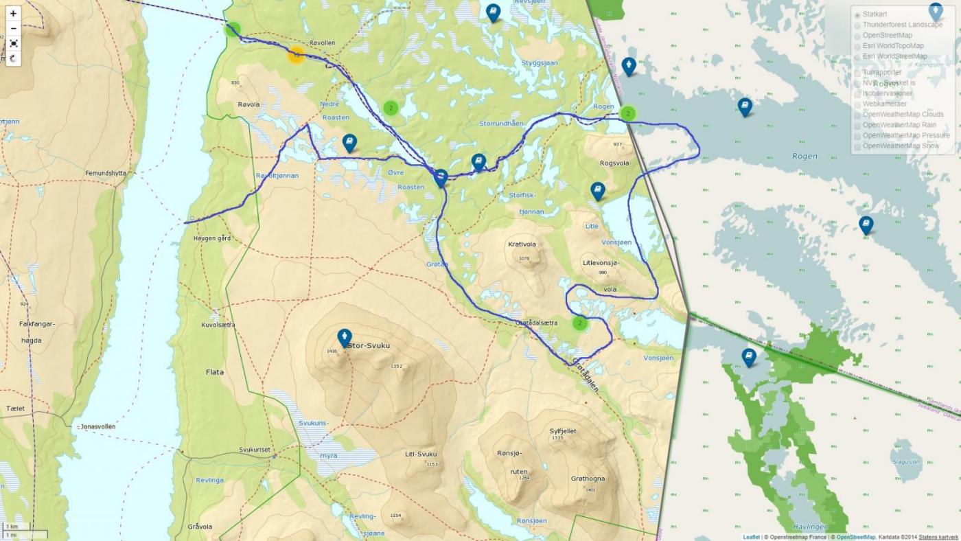 Turfølget til trådstarter her! En mulig rute vi har sett på starter på Tverrsjøstallen og slutter ved Skar, via blant annet Skarvvatnet, Katnosa, Store Sandungen, Bjørnsjøen osv, så da er vi vel innom i alle fall 1 av områdene @Vallers nevner! Åpen for forslag om andre ruter eller vann vi bør stikke innom på veien, eller om vi rett og slett bør legge om fullstendig hvis vi vil ha bedre muligheter for god fisk