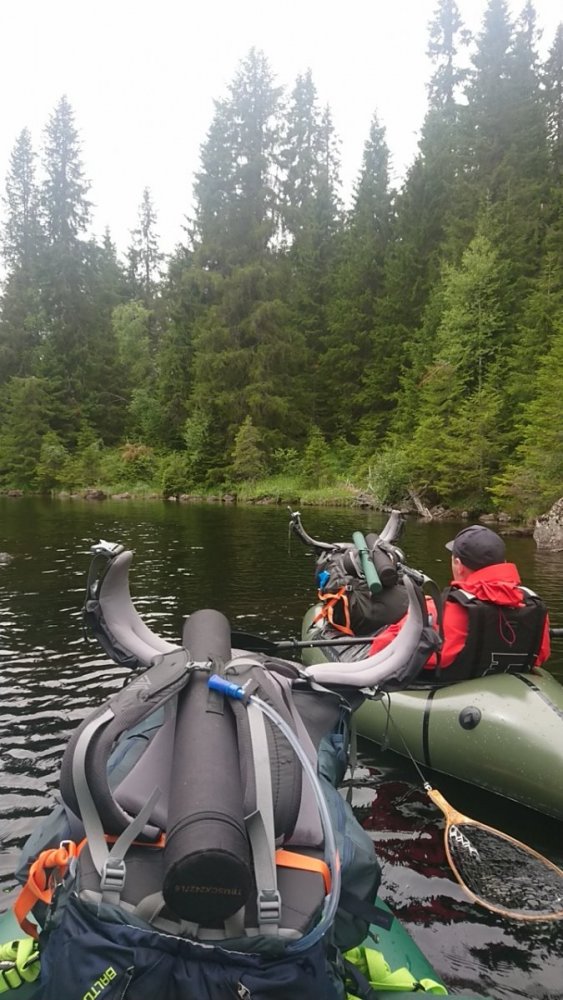 Det har vi! Var fra onsdag til lørdag forrige uke. Skulle egentlig være til søndag, men det gikk raskere enn forventet nedover vanna. Vi spekulerte litt i om Oslomil kanskje er kortere enn vanlige mil. Storfisken hadde gjemt seg godt, så ble bare masse småfisk på oss. Lyspunktet må vel være at begge to fikk abbor på kroken. Har ikke slikt der vi holder til, så det var jo litt stas! Packraft viste seg å være et fantastisk fremkomstmiddel både på og mellom vannene, selv om vi ikke var langt unna å bli blåst inn i steinene når vi kryssa Store Sandungen i mildt sagt frisk vind! Vi fikk tips om å prøve oss i Spålselva ved Katnosa, men det ble ikke det helt store det heller. Var veldig lite vann i elva, og det som var der var veldig grått og grumsete. Vi fant en halvdød fisk som fløt med buken opp i en kulp så vi begynte å lure på om det hadde blitt sluppet ut noe fælt i vannet. Når vi kom helt opp møtte vi et arbeidslag med gravemaskin som dreiv å bygde en bro så det ut til, så gråfargen skyldtes nok graving og ikke utslipp av noe farlige greier, heldigvis. Fisken døde forhåpentligvis av naturlige årsaker. Lyden av biler og alle bilveiene rundt omkring ødela litt av opplevelsen syns vi, men alt i alt var det en veldig fin tur! Nå er vi igang med å lete etter flere fine padleturer rundt omkring i landet