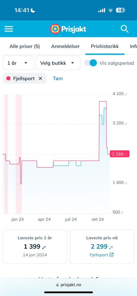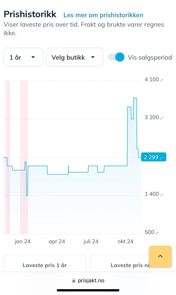 8. Vi burde straffe butikker som har denne praksisen med boikott. Dette er prishistorikken på et produkt som en stor nettbutikk nå sier er -40%.