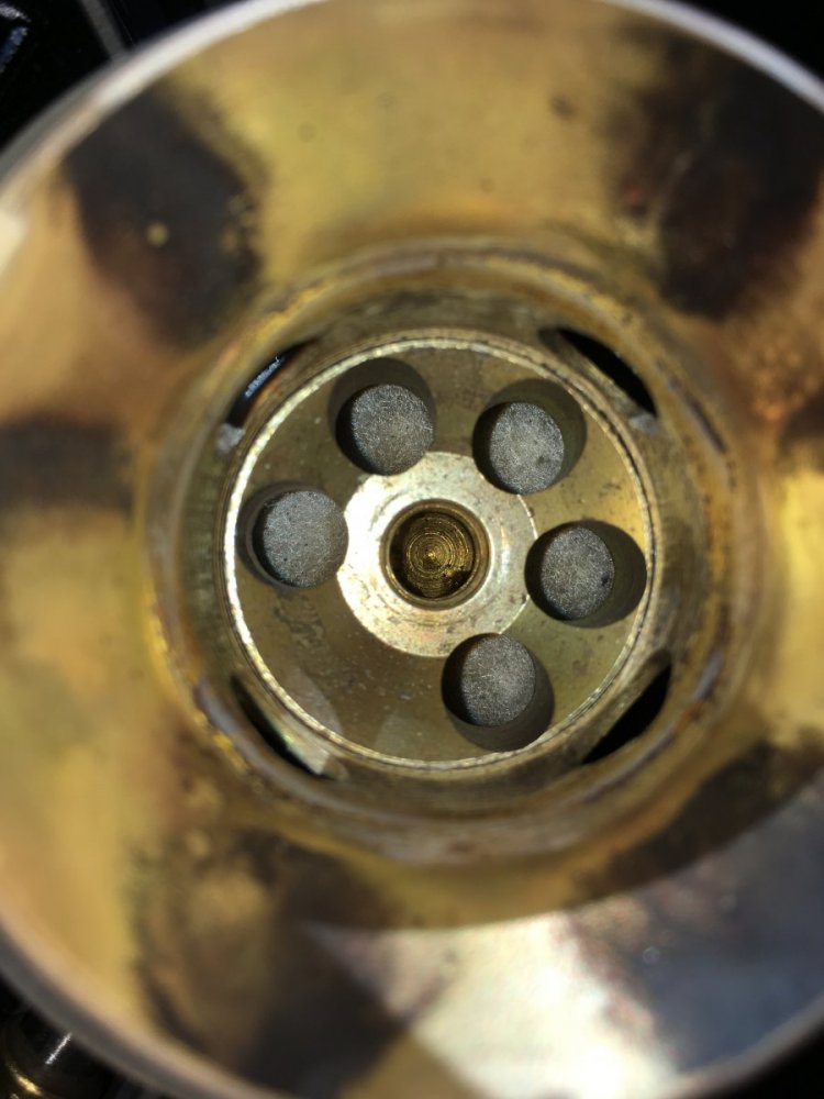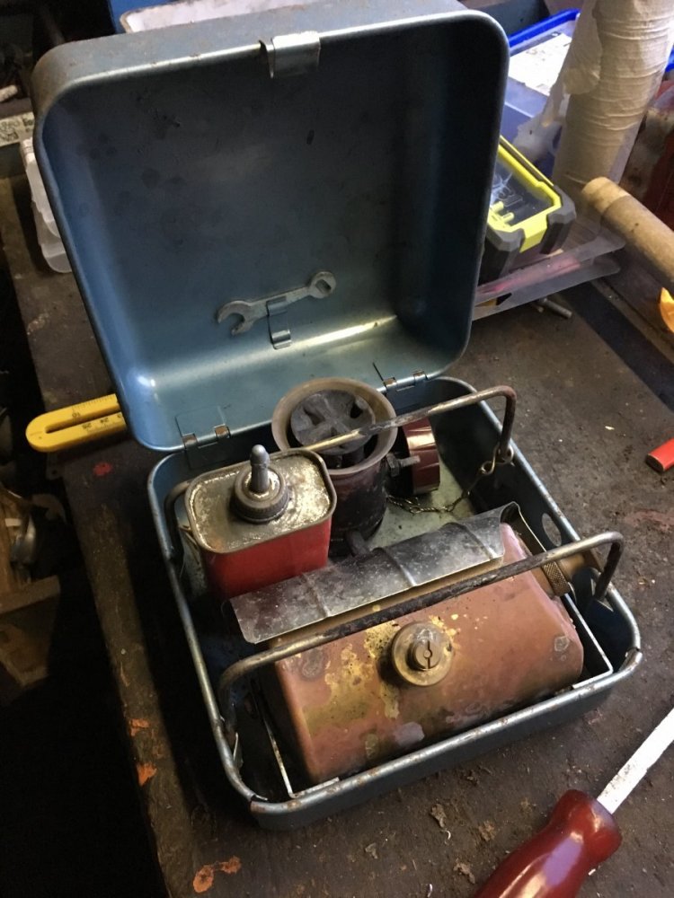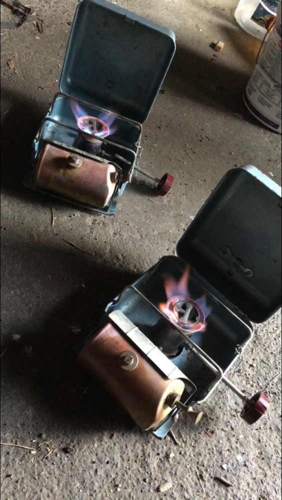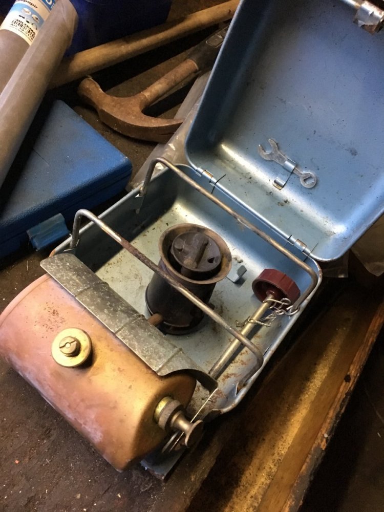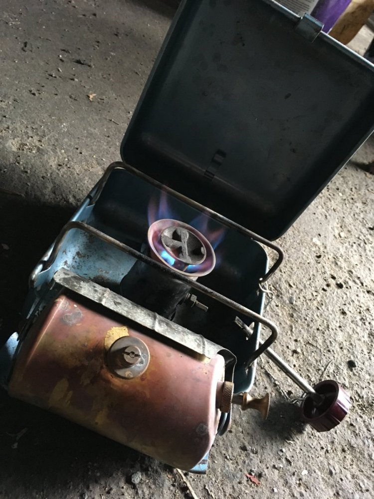 Tok å flusha tank og rør/dyse. Smørte opp pumpa og pakninger. Fylte opp med lampeolje og forvarma godt med rødsprit. Tente tvert😊 brant opp litt over en halv tank. Brant renere og renere. Positivt overrasket hvor lite man måtte pumpe. Er det fordi varmen bygger trykk i tank?