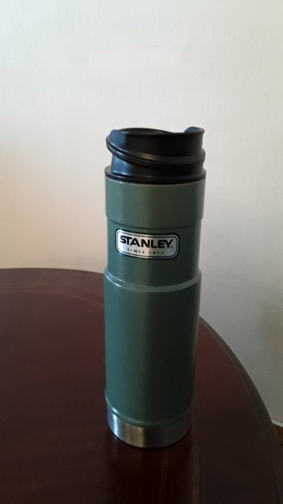 Bruker selv også Stanley sin. Har 591ml versjonen kjøpt i USA, men tror den kanskje nå kan anskaffes i den størrelsen i Norge også. Så langt ganske fornøyd med den. Klarte å knuse lokket, men resten overlevde så det var bare å kjøpe nytt lokk.