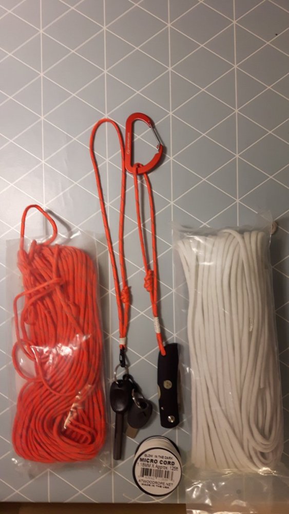 Har blitt hektet på paracord... Fikk 30m signal-oransje med refleks tråder, 30m med glow-in-the-dark + 40m glow-in-the-drak Micro cord i posten fra Paracord.no i dag.