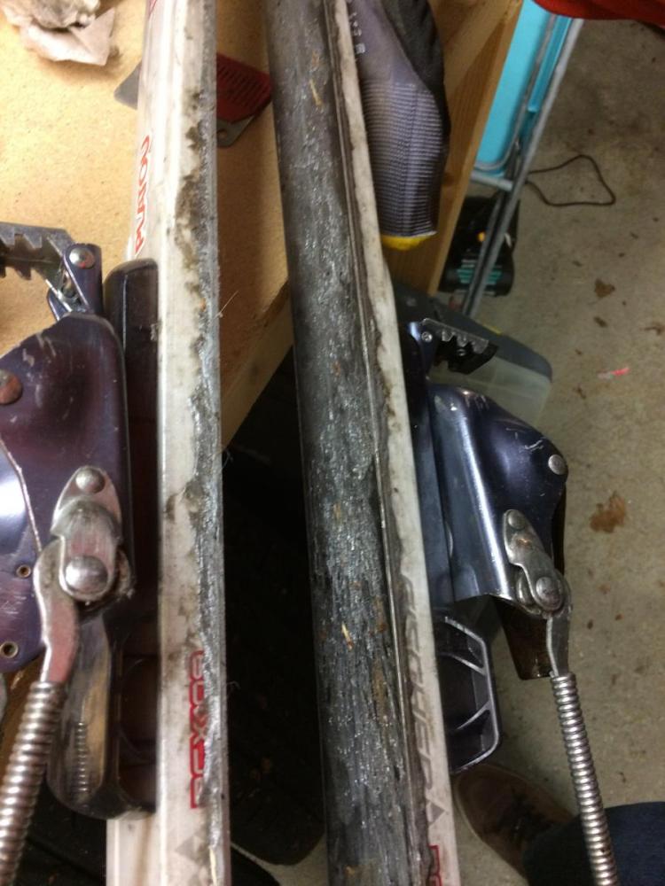 Joda, tok kona sine ski først, følger stort sett den oppskriften. Mine var hakket verre, worries for another day😉 De får holde denne sesongen og, før de blir degradert til vår-ski. Rustne bindinger og sliten såle. Har et par timer med kosearbeid foran meg før jeg er klar for skitur🙂